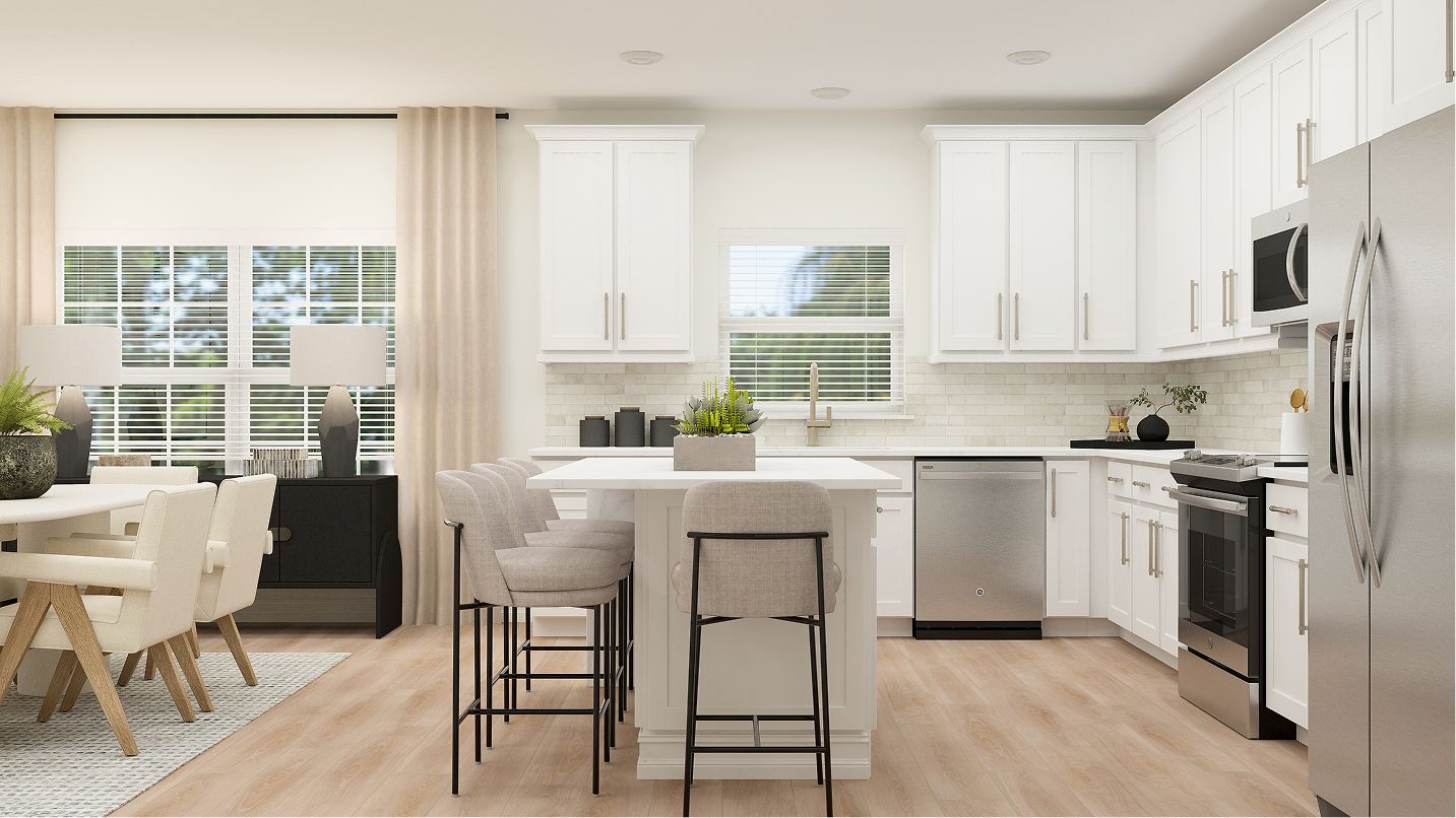 The collection’s largest townhome features three-stories, with a bedroom that can double as an office space privately located on the first floor. The second level is ideal for entertaining with an open design among the living room, dining room and kitchen. On the third floor are three bedrooms which include the lavish owner’s suite with a private bathroom.