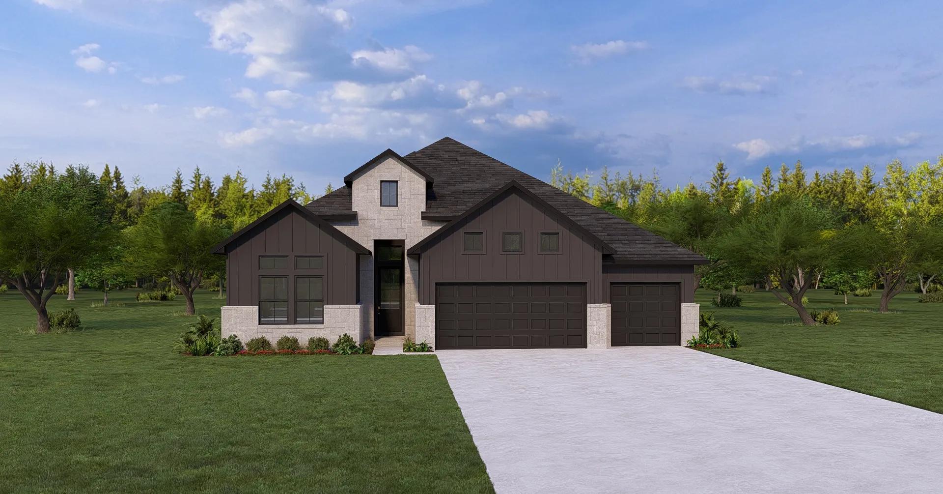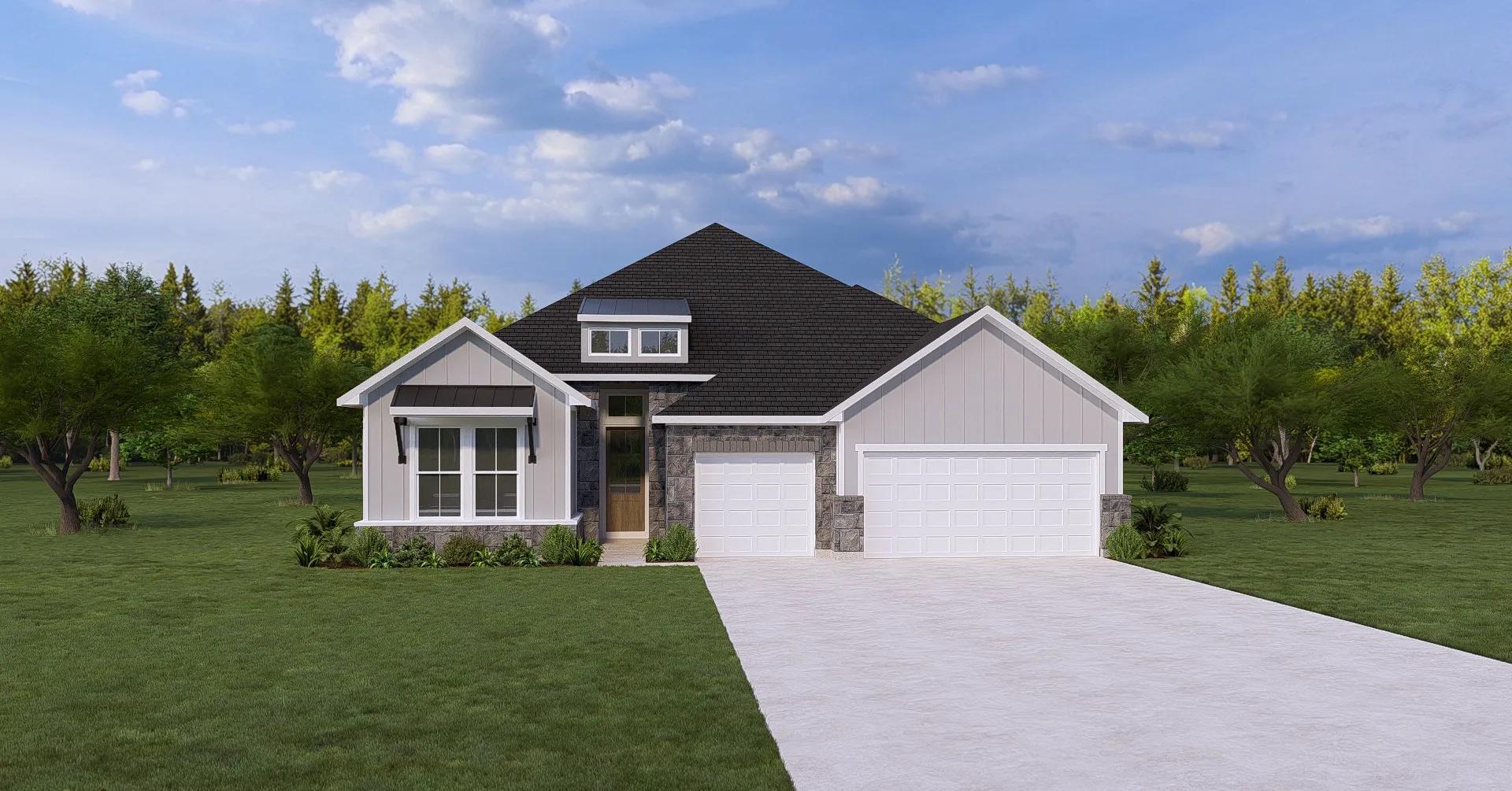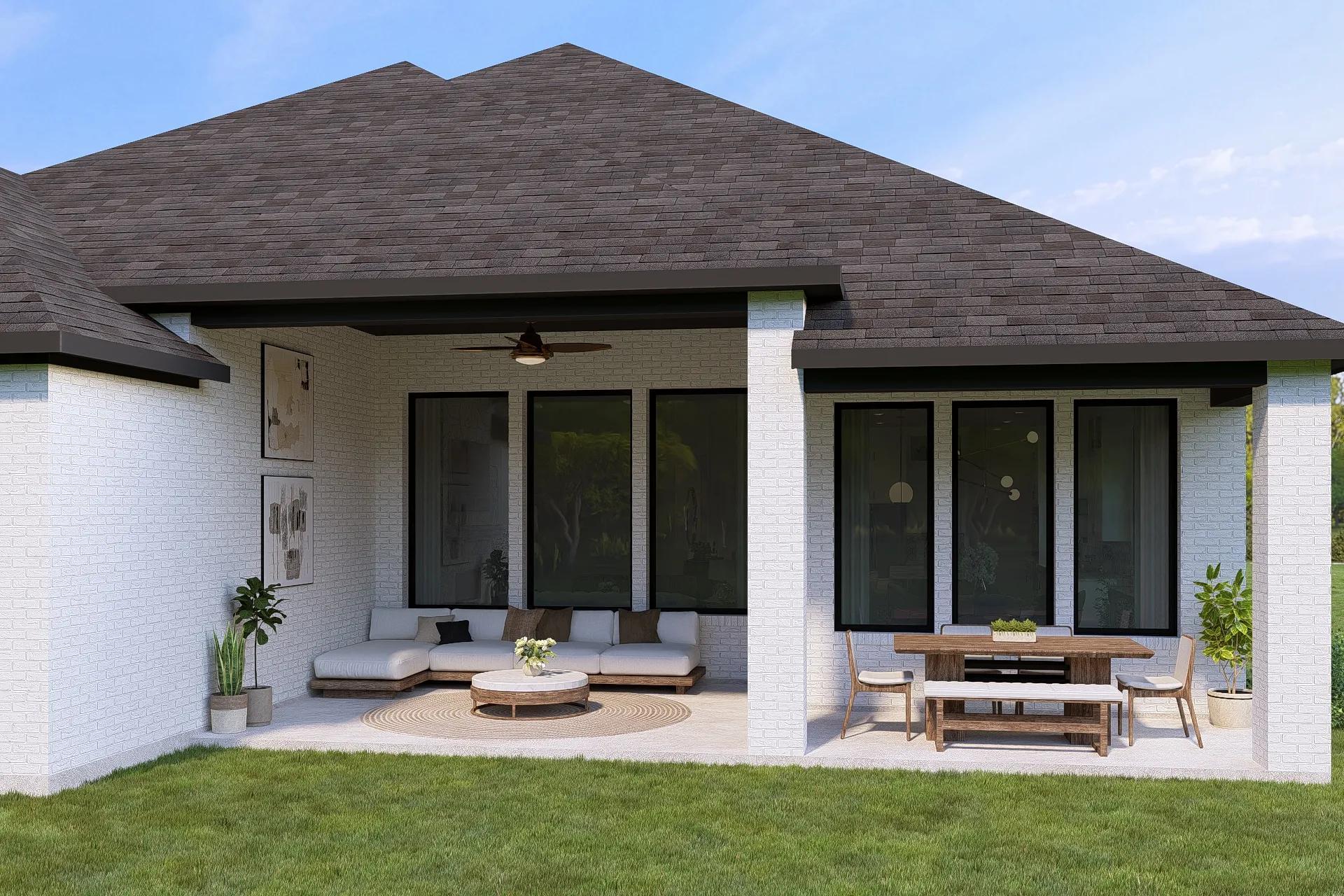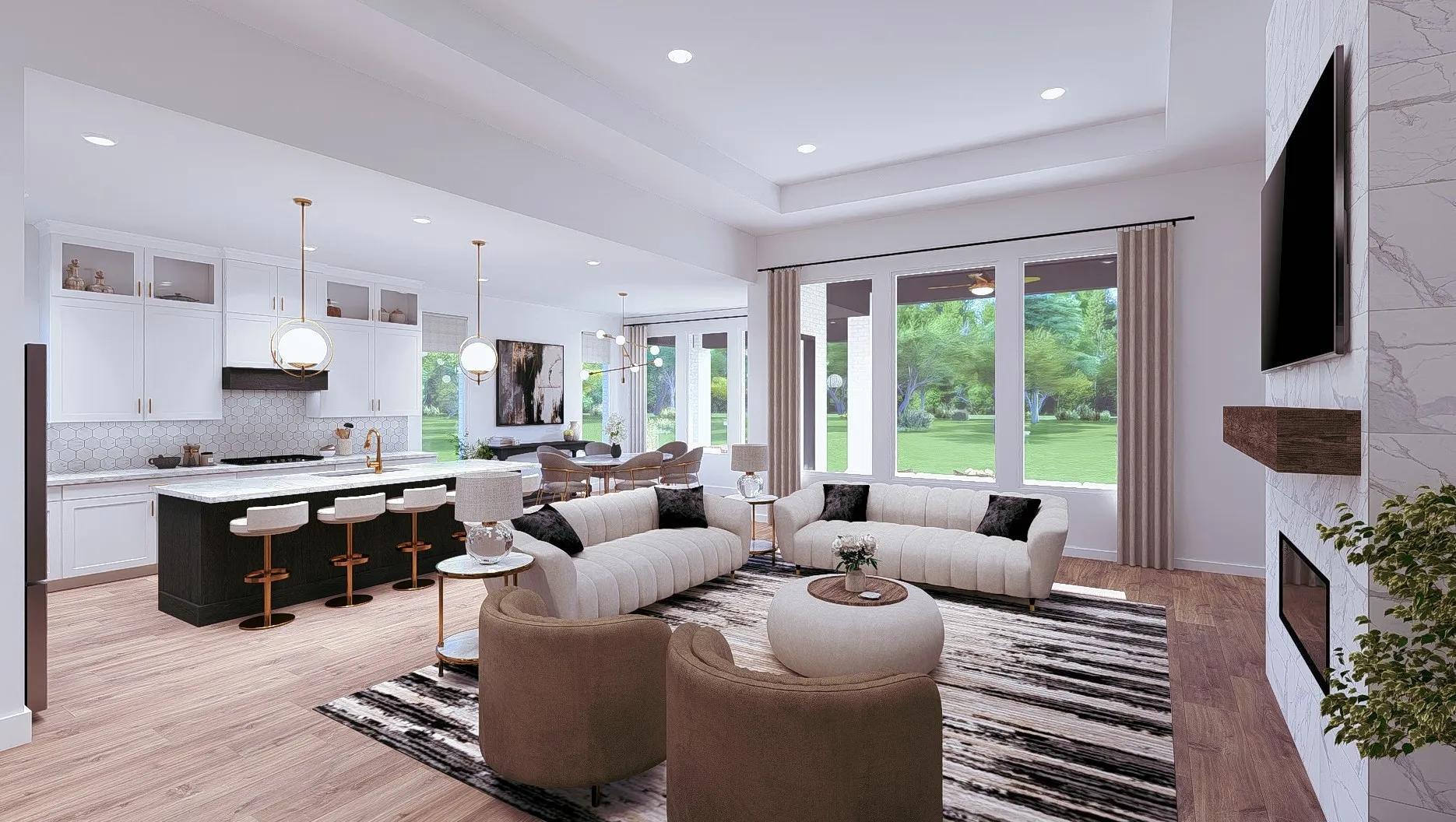 This thoughtfully designed single?story plan delivers open, comfortable living with both privacy and flexibility in mind. The central family room opens seamlessly to the kitchen and dining area, creating a welcoming space for everyday living and entertaining. Sliding doors extend the living area to a covered outdoor space, ideal for indoor?outdoor enjoyment. The private primary suite is tucked away and features a spacious bath and walk?in closet, while three secondary bedrooms offer plenty of room for family or guests. A dedicated home office near the foyer supports today?s work?from?home lifestyles, and practical touches like a centrally located laundry room and two?car garage add everyday convenience.