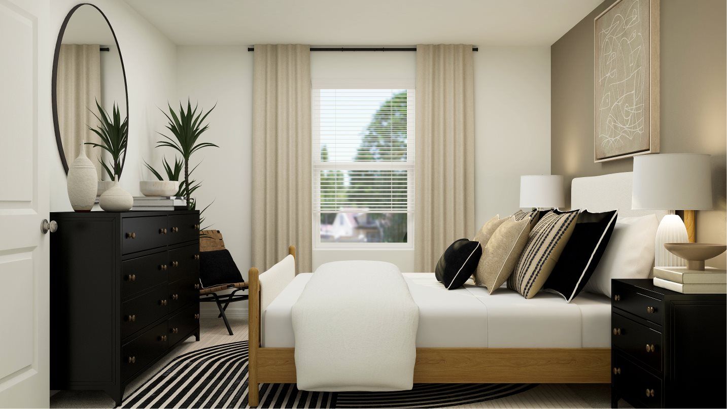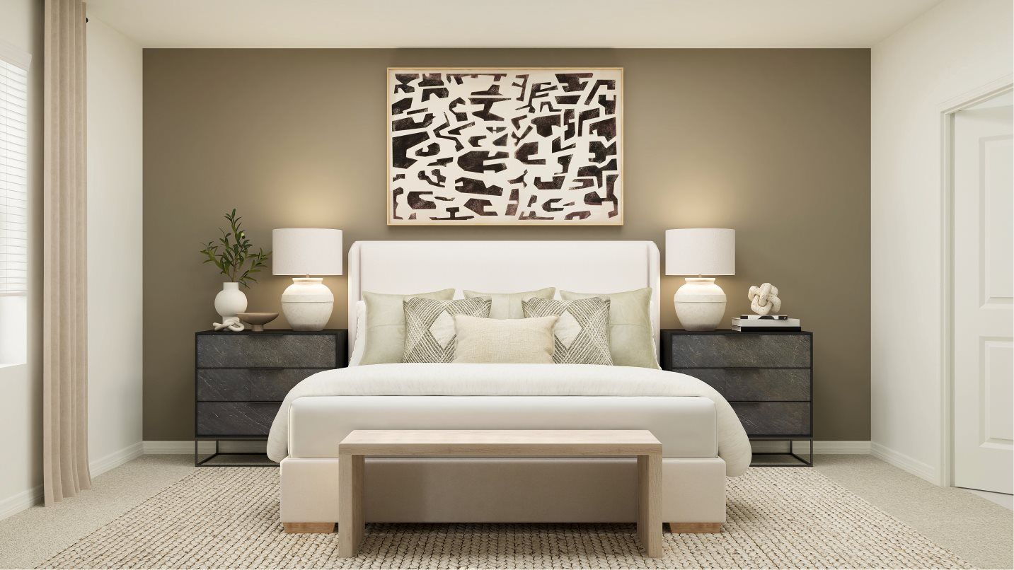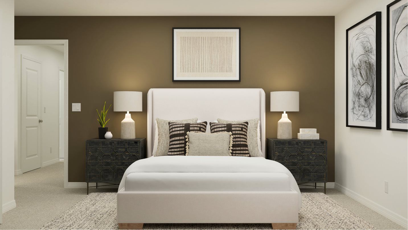 This two-story home highlights a modern open layout, seamlessly integrating a first-floor kitchen with a central island, a dining room and a welcoming family room with patio access. On the same level is a private owner's suite with an attached bathroom. Situated upstairs is a versatile loft for additional shared living space and four secondary bedrooms to provide restful retreats to family members and guests alike.