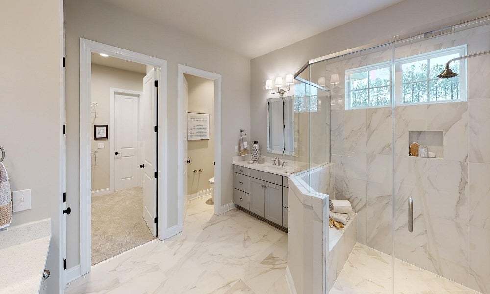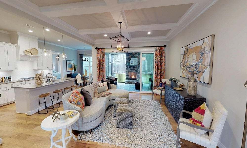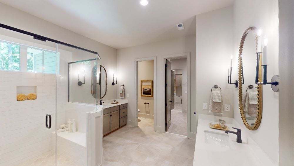 The Grayson is a beautifully balanced three-bedroom ranch that combines modern flow with timeless appeal. Its airy, open layout effortlessly unites the gourmet kitchen and expansive family room, setting the stage for lively gatherings or quiet evenings in. The primary suite is set apart in its own wing, offering a serene and secluded escape with large walk-in shower, dual vanities, and expansive primary closet. Two secondary bedrooms are discreetly positioned off the main living space, providing a quiet, comfortable retreat for guests, family, or flexible use. With its attention to everyday ease, the Grayson is a thoughtfully curated home that elevates single-level living.