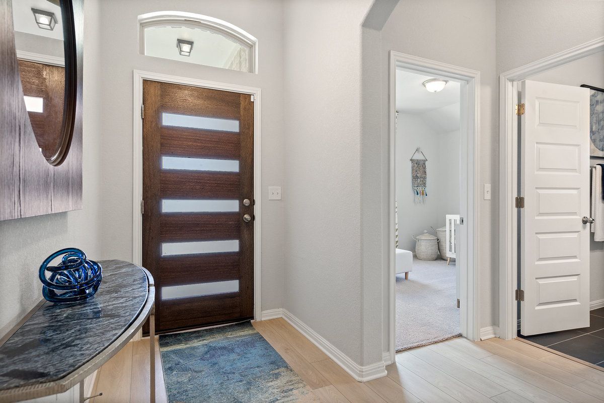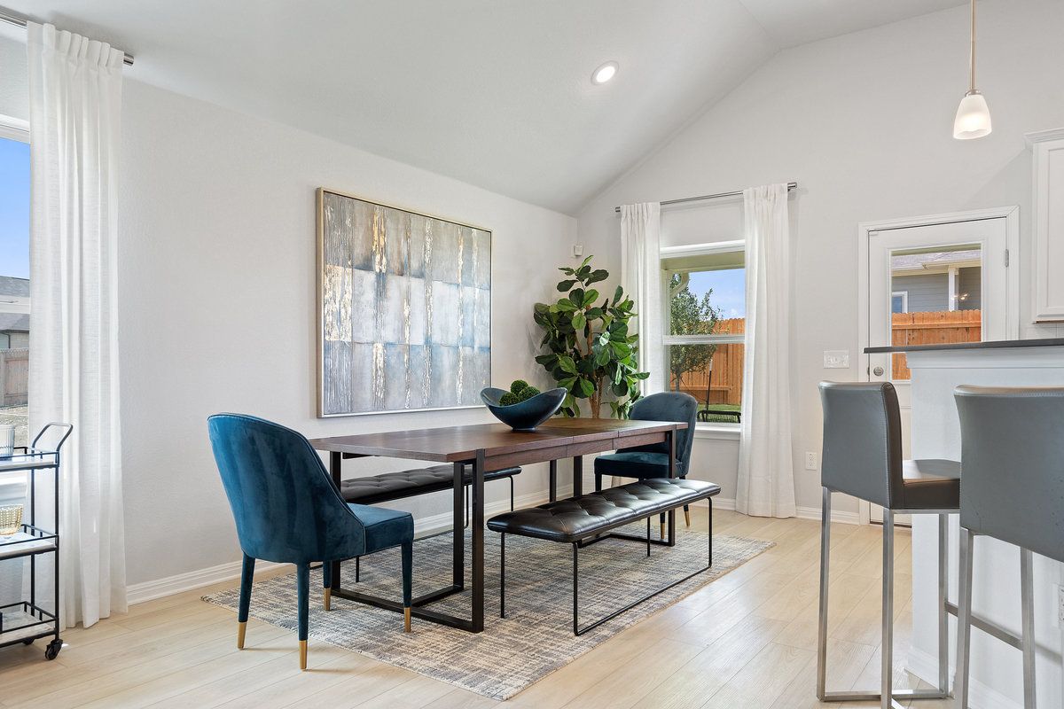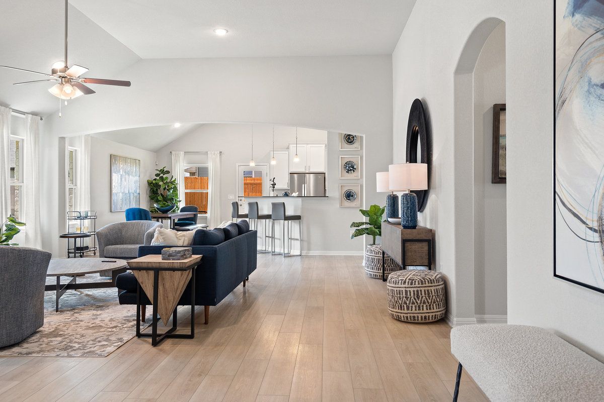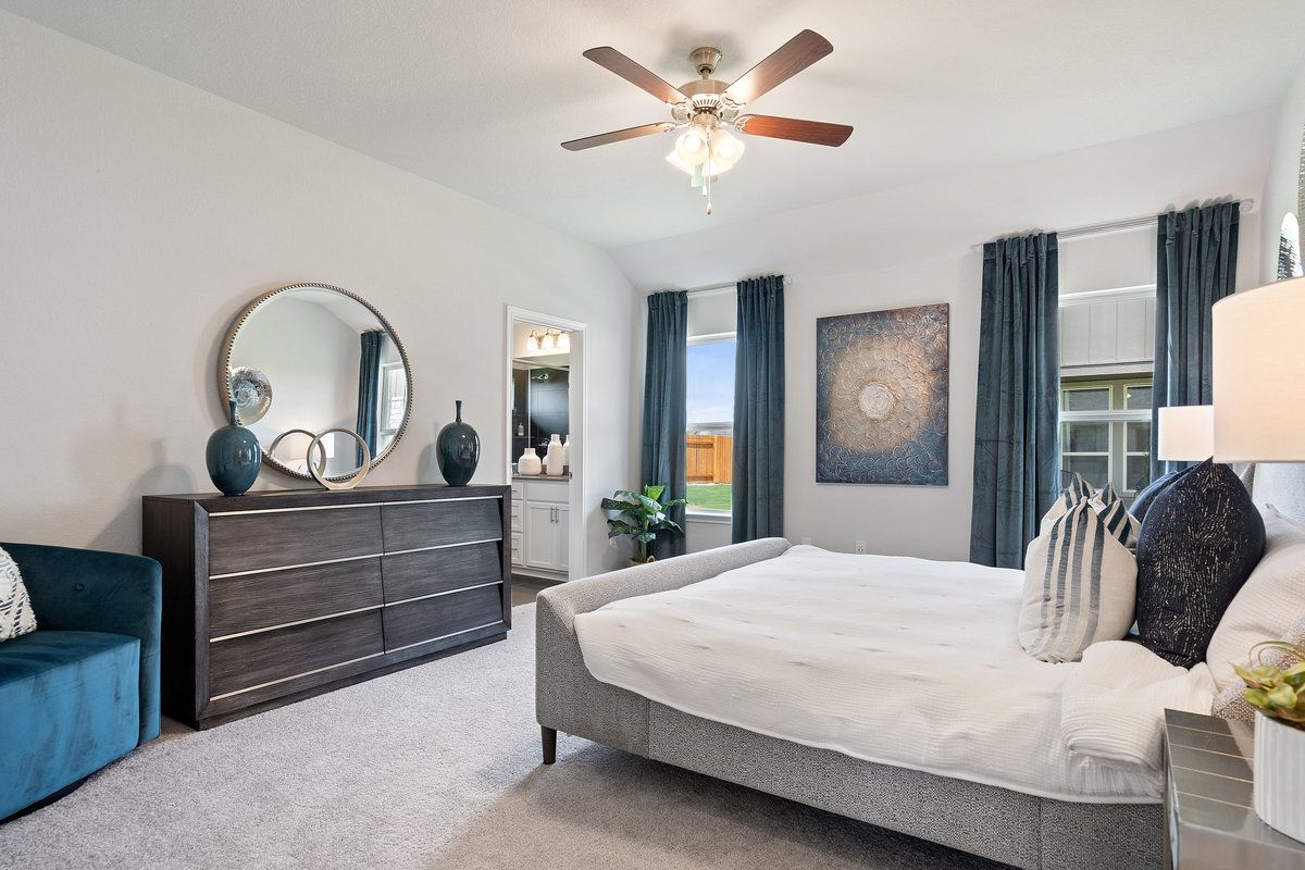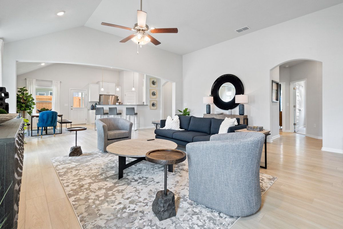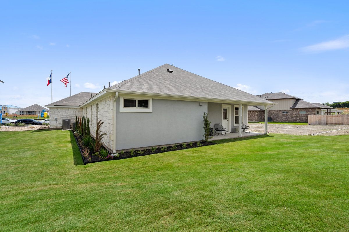 This one-story, 4-bedroom, 3-bathroom floor plan—with a secondary bedroom attached bath—is the ideal multi-generational layout. An open concept, there is plenty of space for being together in the spacious family room, dining room, den (optional fifth bedroom). The kitchen offers eat-in dining, a walk-in pantry, and a peninsula breakfast bar overlooking the whole space. In the Owner's Suite, design decisions like the dual vanity, separate tub and shower, and a remarkable walk-in closet make for a peaceful retreat from the otherwise socially-oriented layout. Thoughtful touches like the formal entry and rotunda, tall living room ceilings, and the spacious back patio make the [Hamlin/ Granbury] a standout within our collection.