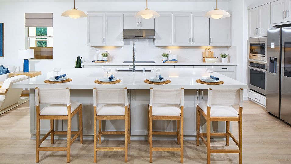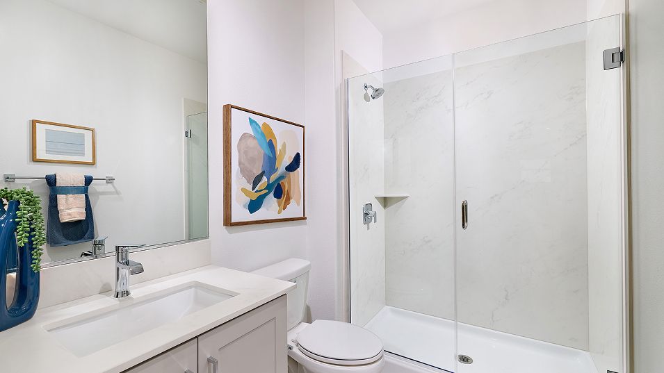 On the first floor of this new two-story home is a secluded bedroom nestled into a private rear corner, next to a spacious and flexible open-concept layout where the kitchen, dining area and Great Room meet. On the second floor, two bedrooms and a lavish owner’s suite with a full bathroom and walk-in closet are just steps from a versatile loft, perfect for entertaining and relaxing throughout the week.