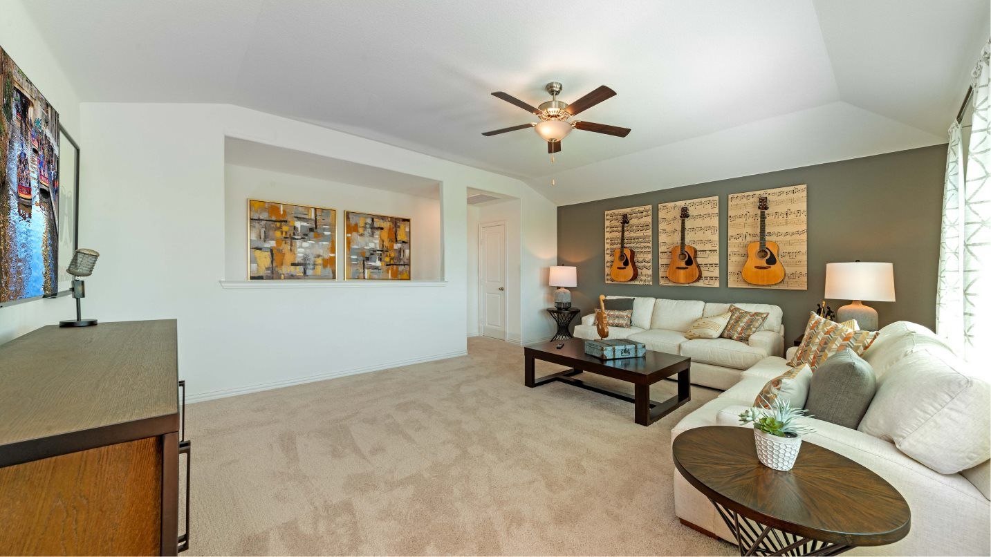 This two-story home has a convenient layout that offers endless possibilities. On the first floor are four bedrooms, including the owner’s suite with an en-suite bathroom and walk-in closet, as well as an open-concept living area with a formal dining room attached. Upstairs is a versatile game room that can easily serve as a home office or storage area.