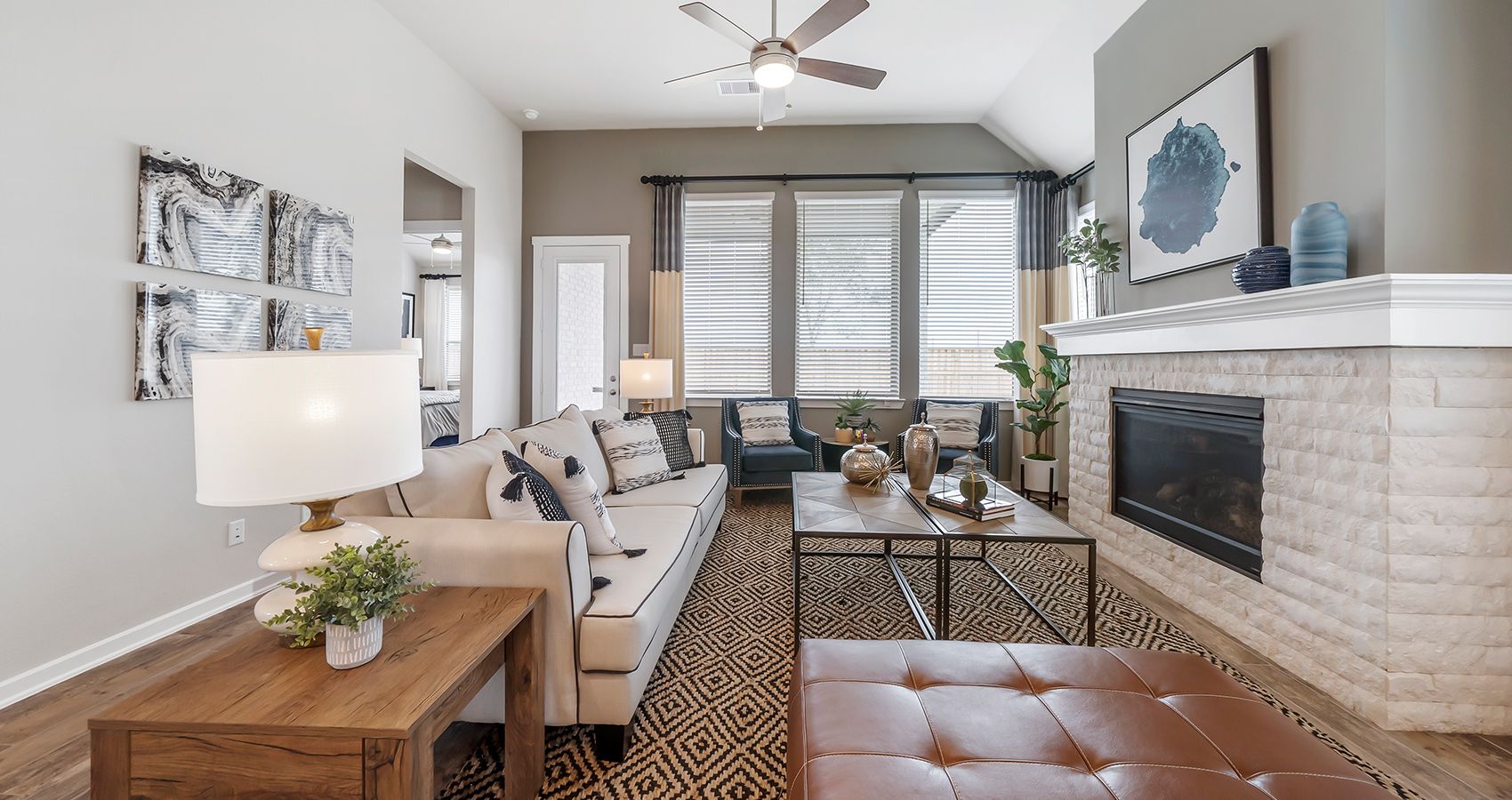 Single-story | 4 bedrooms | 3rd bedroom / game room option | 3 baths | 2-car attached garage | covered patio | Extended foyer leads to open casual dining, family room, and island kitchen with additional countertop dining. Bedroom 3 can serve as 2nd master. Study is convenient to common area and master suite. Master bedroom located at the back of the home for privacy. **Photos are representative, selections & features may vary with community**
