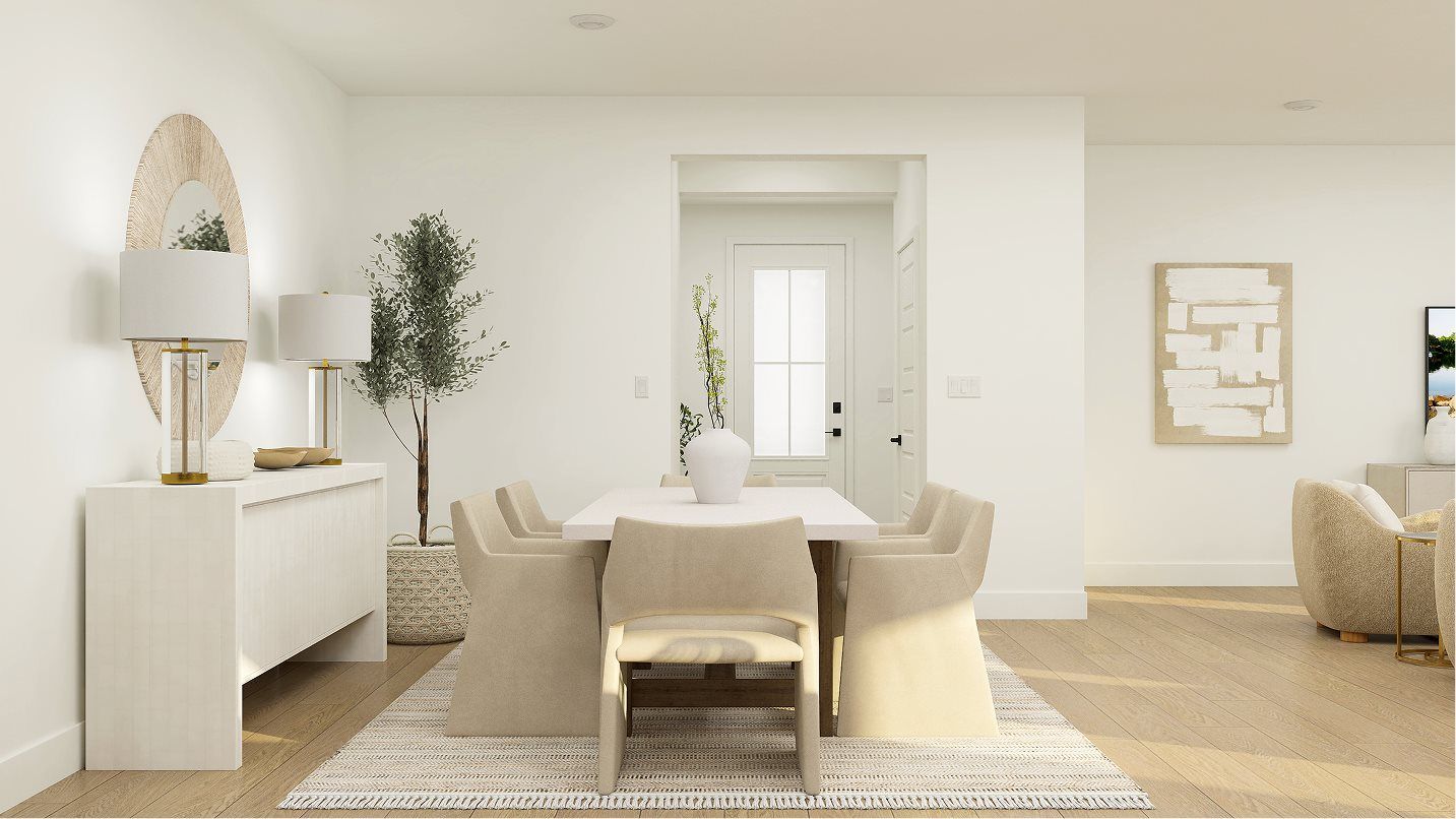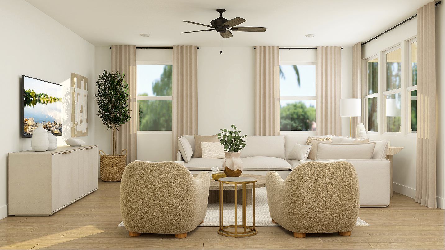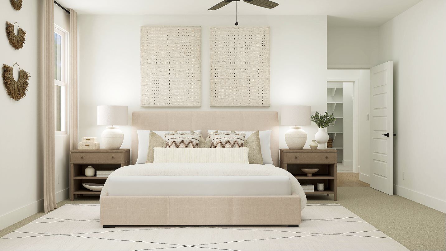 This four-bedroom home features a convenient layout contained to a single level. An open-concept floorplan combines the kitchen, living and dining areas to maximize interior space, and a patio provides seamless outdoor entertaining and relaxation. All four bedrooms share a private hallway off the entry, including the lavish owner’s suite with a spa-inspired bathroom and walk-in closet.