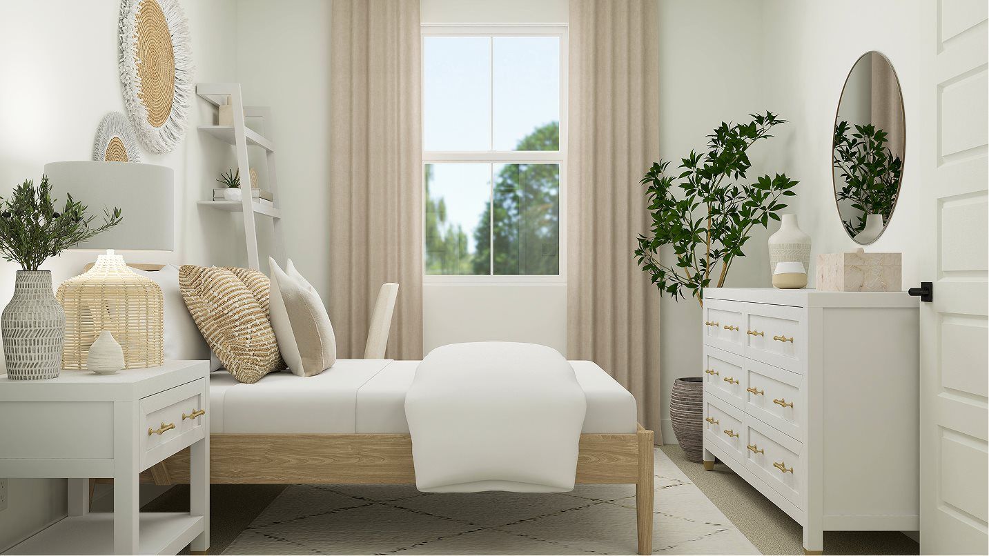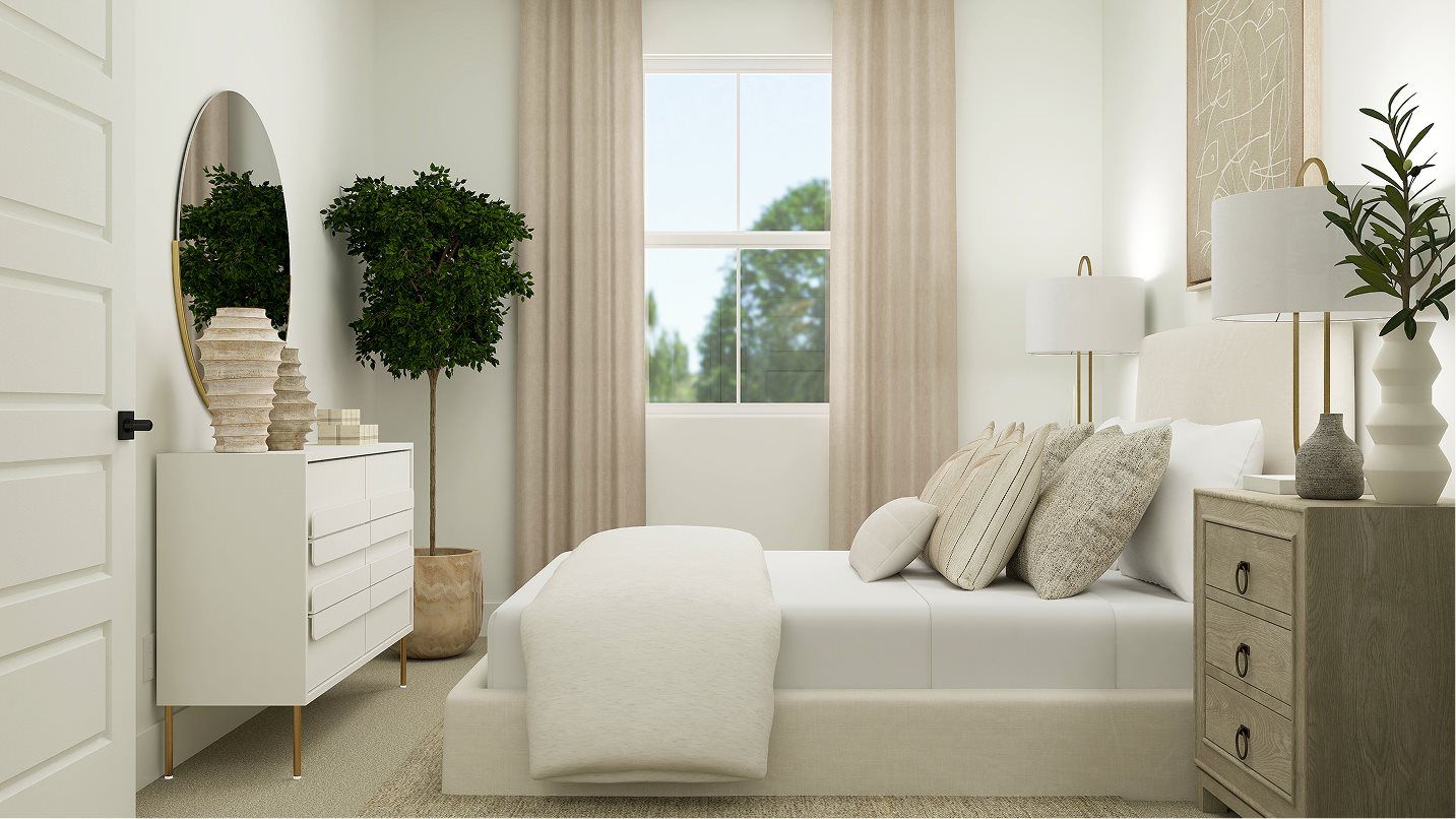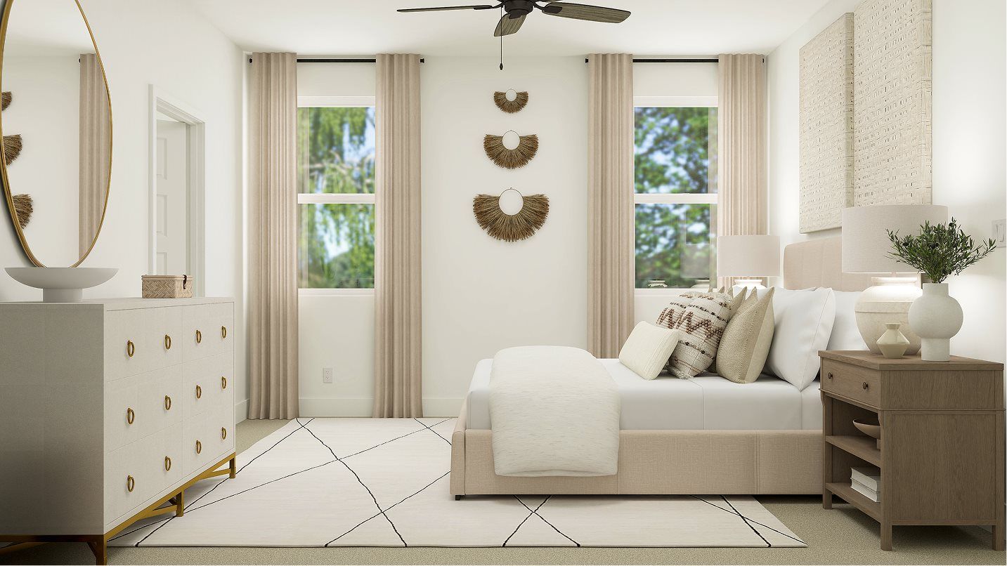 This four-bedroom home features a convenient layout contained to a single level. An open-concept floorplan combines the kitchen, living and dining areas to maximize interior space, and a patio provides seamless outdoor entertaining and relaxation. All four bedrooms share a private hallway off the entry, including the lavish owner’s suite with a spa-inspired bathroom and walk-in closet.