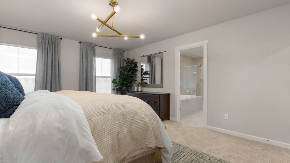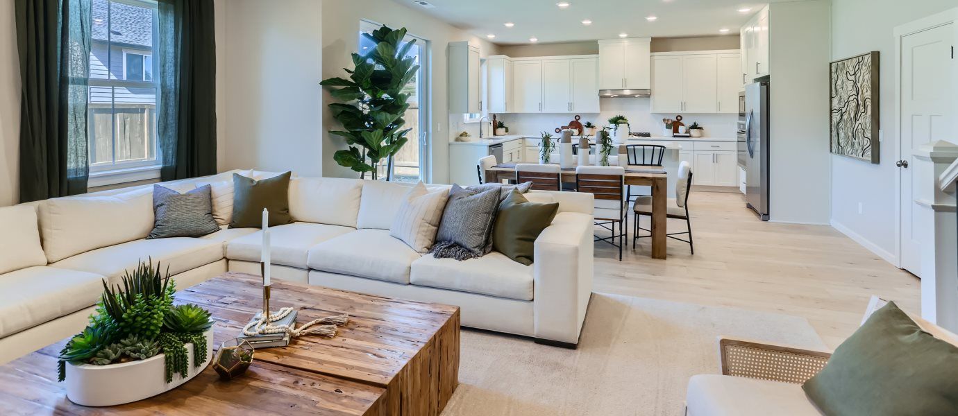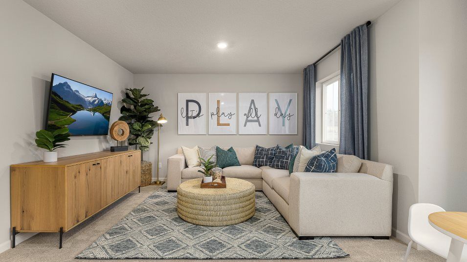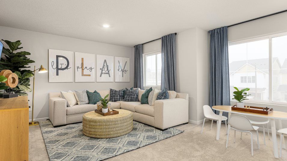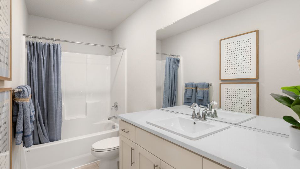 This two-story home has a simple layout that works well for growing families. The front door leads to an open area that is great for entertaining guests, offering a modern kitchen, Great Room and dining area with a back patio. Upstairs are three bedrooms, including the owner’s suite with a full bathroom, plus a versatile bonus room.