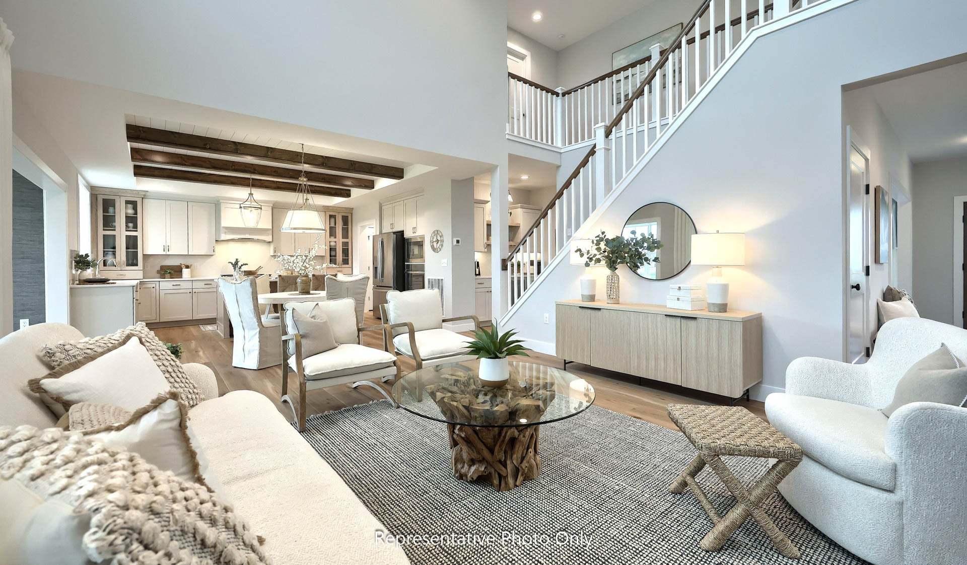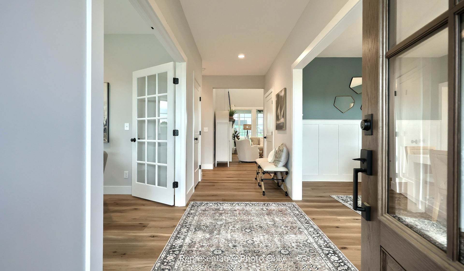 This two-story home with over 3,000 sq. feet includes a 2-car garage with mudroom entry. To the front of the home is a versatile living room and a formal dining room with an optional tray ceiling. A 2-story great room with optional gas fireplace opens to the breakfast area and kitchen. The laundry room is on the 2nd floor convenient to the bedrooms. The owner’s suite with an expansive closet and private bathroom can be upgraded. An optional recreation room can be added to the 2nd floor for additional living space. A grand, 2-story foyer option can also be added to the home. (Pricing may reflect limited-time savings/incentives. See Community Sales Manager for details.)