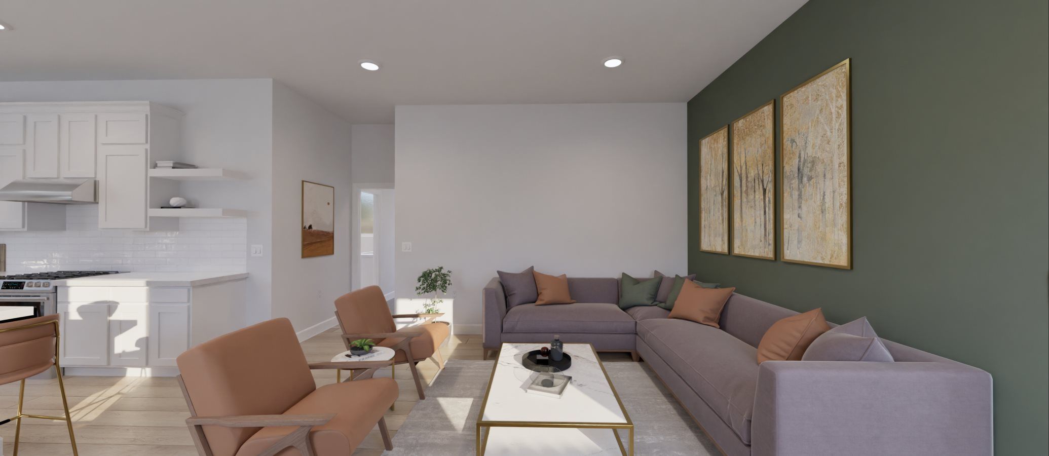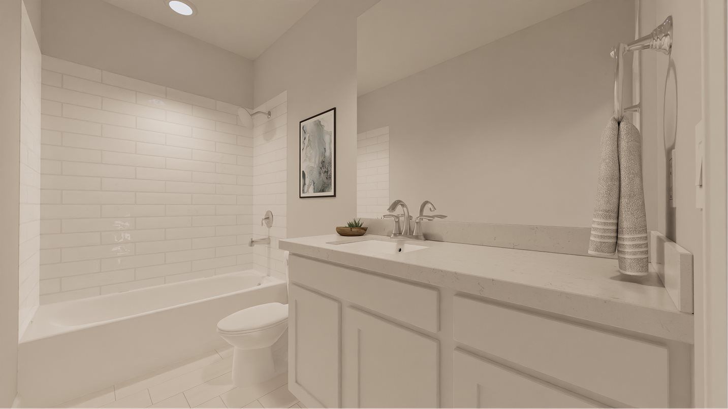 This new four-bedroom home showcases a modern layout contained to a convenient single level. An open-concept floorplan with access to a covered patio promotes effortless entertaining and multitasking. Three secondary bedrooms can be found at the back of the home, and the luxurious owner’s suite is tucked away to the side for enhanced comfort and privacy, complete with an en-suite bathroom and generous walk-in closet.