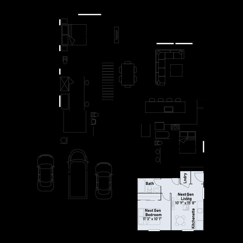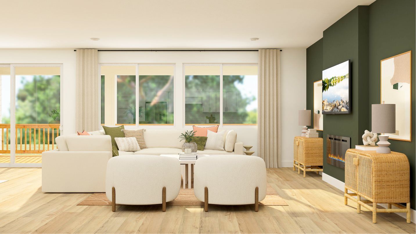 This Next Gen® home features a private suite with a separate entrance, living area, kitchenette and bedroom, perfect for multigenerational households. A secondary bedroom is located off the entry, leading to an open-concept floorplan with access to a covered deck. The luxe owner’s suite is tucked into a private rear corner on the first floor, complete with a spa-inspired bathroom and walk-in closet. A recreation room and two additional secondary bedrooms make up the basement level, with a nearby covered patio ready for outdoor entertainment or leisure.