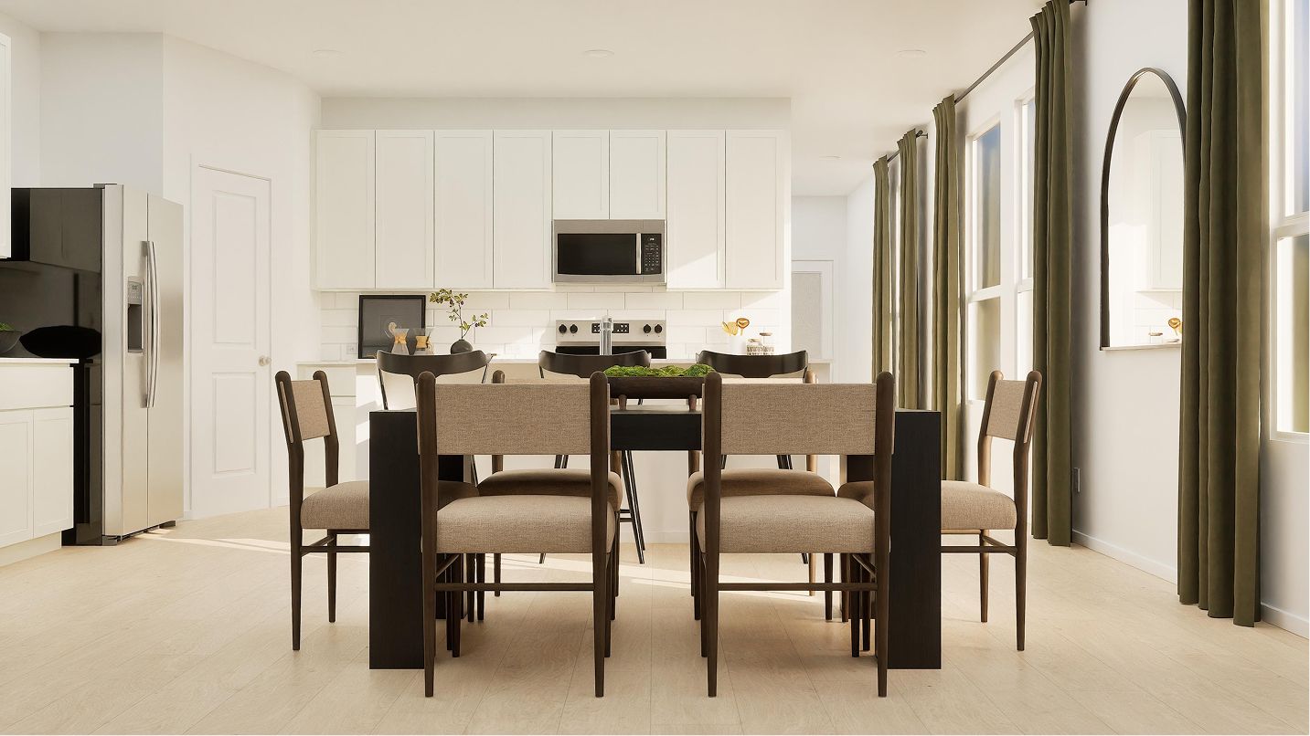 This new two-story home offers a spacious and modern layout ready for any lifestyle. A first-floor owner’s suite provides a serene retreat with a full bathroom and walk-in closet, while a flexible open-concept layout blends the kitchen, dining room and family room with easy access to an inviting covered patio. On the second floor, a versatile loft provides a convenient shared living space easily accessible from three secondary bedrooms, with one featuring an en-suite bathroom for streamlined, everyday living.