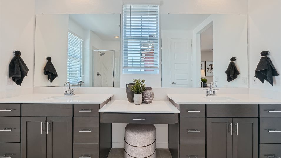 Reflection II offers brand-new single-family homes for sale at the Hawes Crossing masterplan in Mesa, AZ. The community features fantastic onsite amenities, including a sparkling swimming pool, sport courts, picnic areas and more. Residents enjoy convenient access to shopping, dining and entertainment in the Heritage District, along with proximity to Loop 202 and the Phoenix Mesa Gateway Airport for simple commutes and travel. There are several nearby parks and golf courses providing ample opportunities for recreation. More info about Hawes Crossing - Reflection II