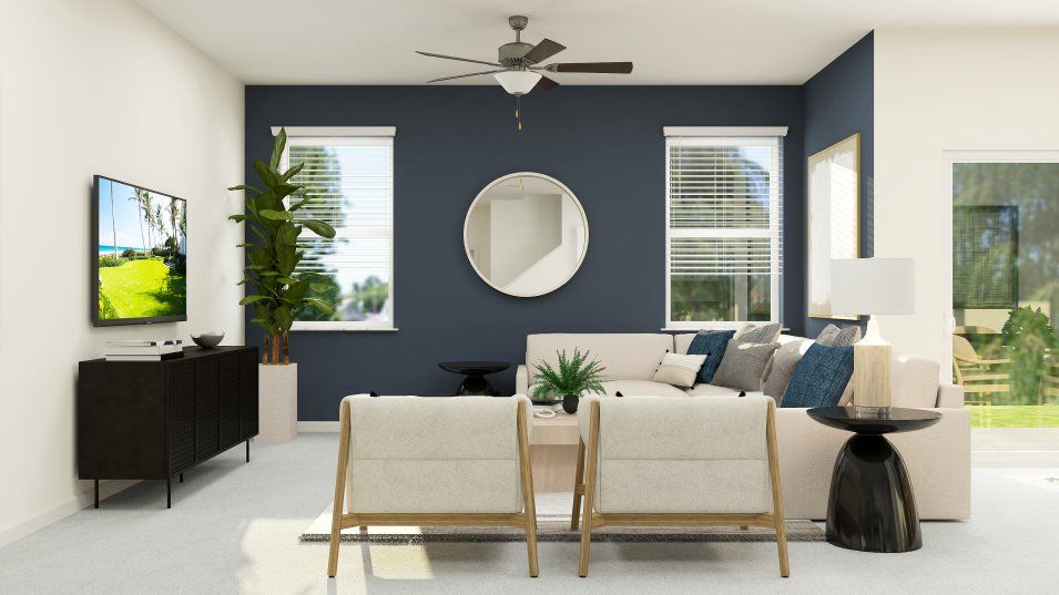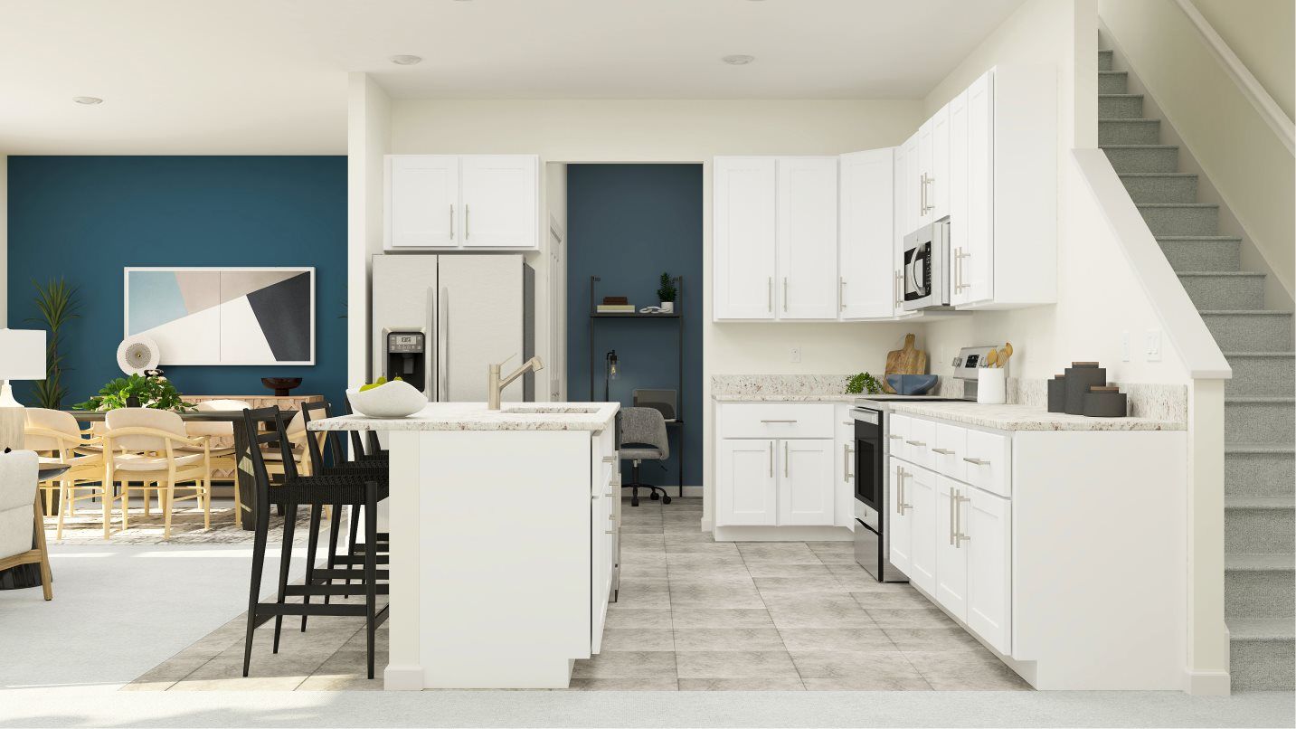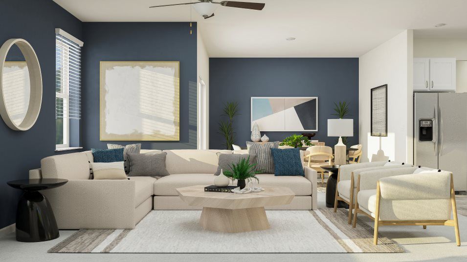 This two-story townhome features a contemporary layout on the first floor connecting the family room, kitchen and dining room in a breezy, open-plan design. Nearby is a covered patio to extend activities outdoors. Upstairs hosts two secondary bedrooms, a versatile loft and the spacious owner’s suite with a spa-style bathroom. Completing the home is a convenient two-car garage for convenient storage space.