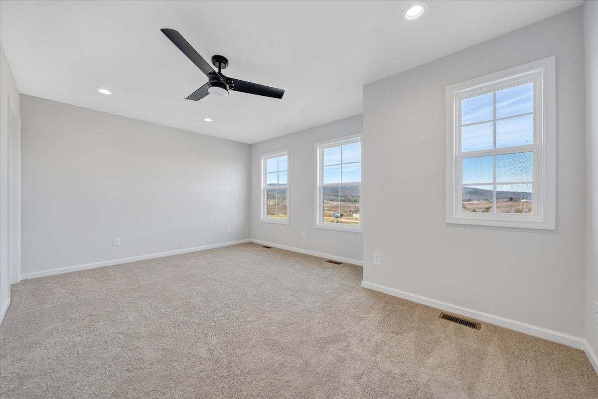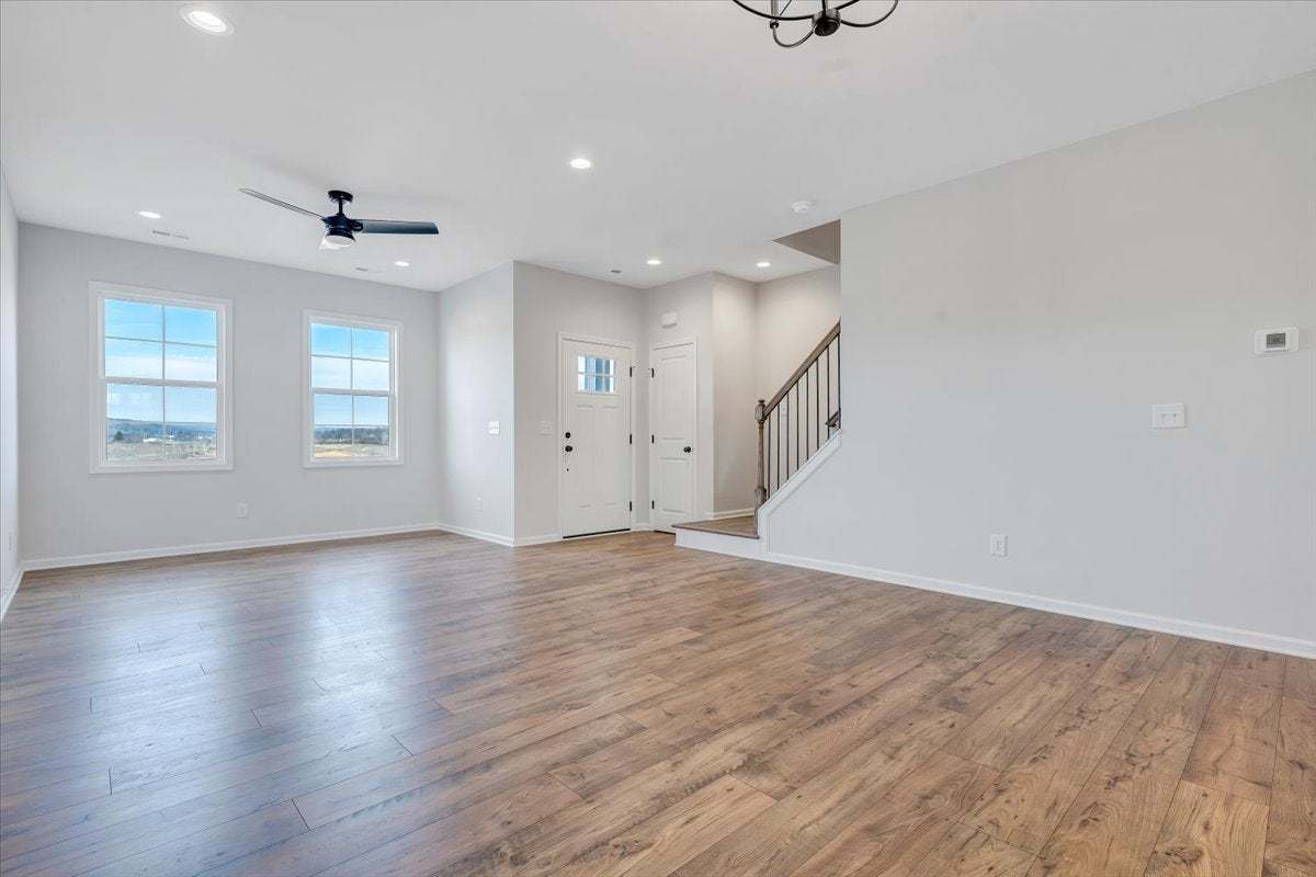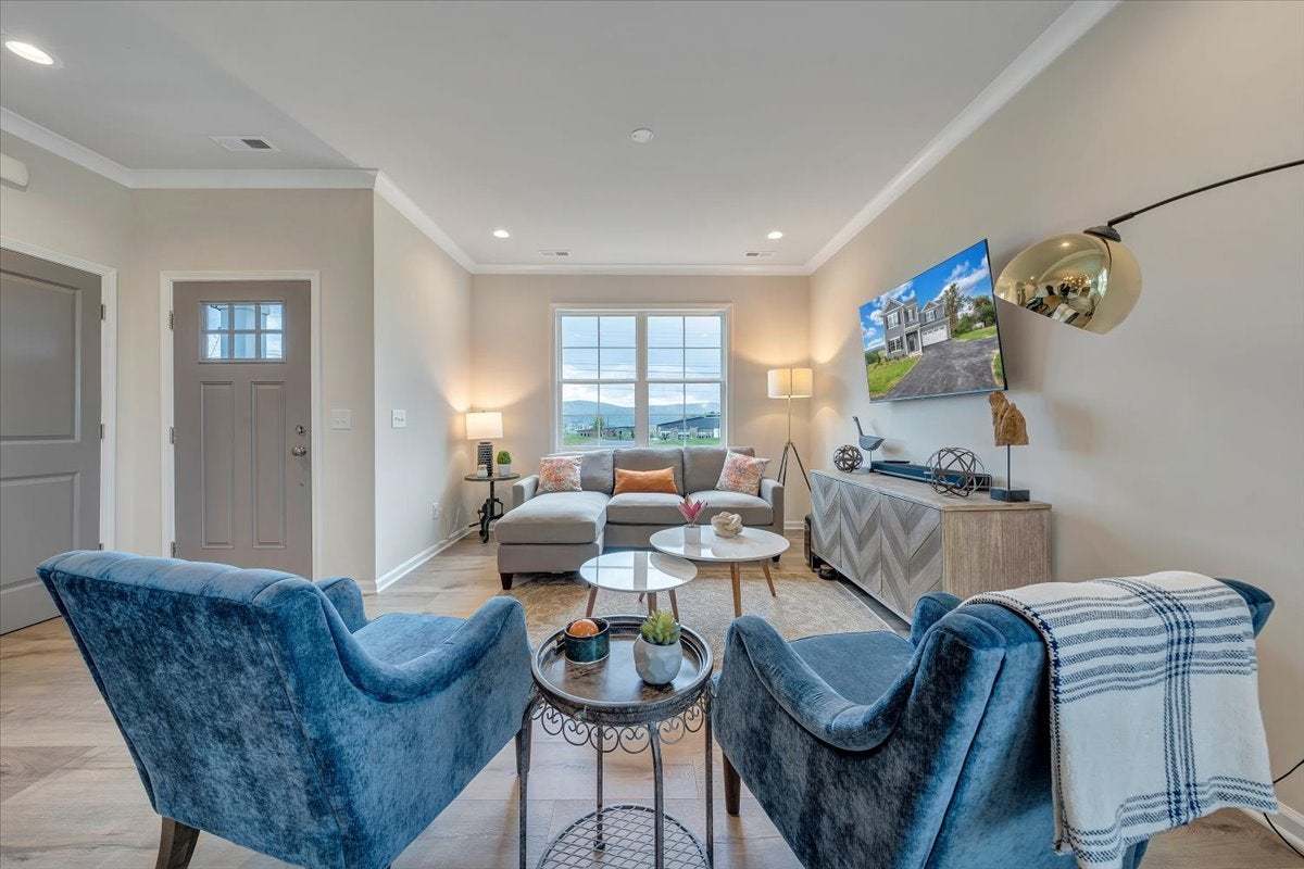 The Millcreek is a spacious 2-story new construction townhome for sale in Blacksburg, VA. Enjoy open concept main level living flowing from your family room to an eat in dining room, all the way to your functional kitchen with island! Head up to the second floor where you will find dual primary bedrooms each with their own private bath, as well as a laundry room. There is an option to add a mud room to the first floor which gives you the opportunity for three bedrooms upstairs instead. Enjoy scenic mountain views from your from porch just minutes from downtown Blacksburg, schools, shopping, and easy access to 460!
