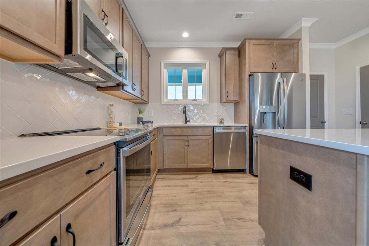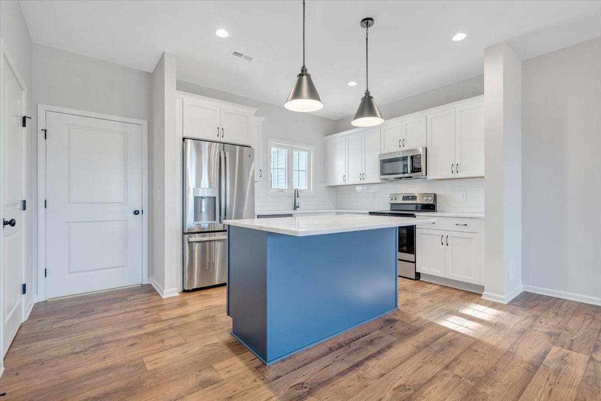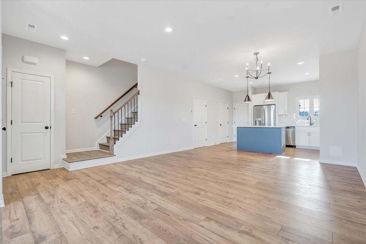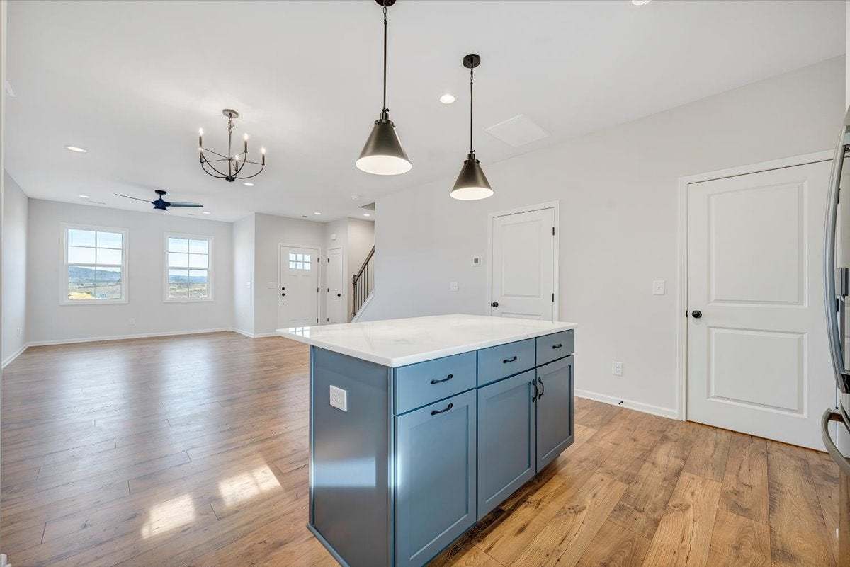 The Millcreek is a spacious 2-story new construction townhome for sale in Blacksburg, VA. Enjoy open concept main level living flowing from your family room to an eat in dining room, all the way to your functional kitchen with island! Head up to the second floor where you will find dual primary bedrooms each with their own private bath, as well as a laundry room. There is an option to add a mud room to the first floor which gives you the opportunity for three bedrooms upstairs instead. Enjoy scenic mountain views from your from porch just minutes from downtown Blacksburg, schools, shopping, and easy access to 460!