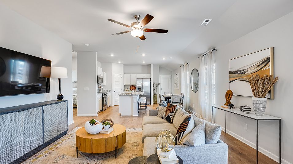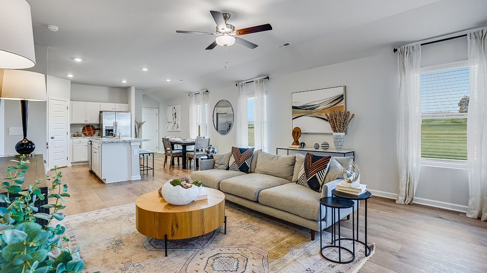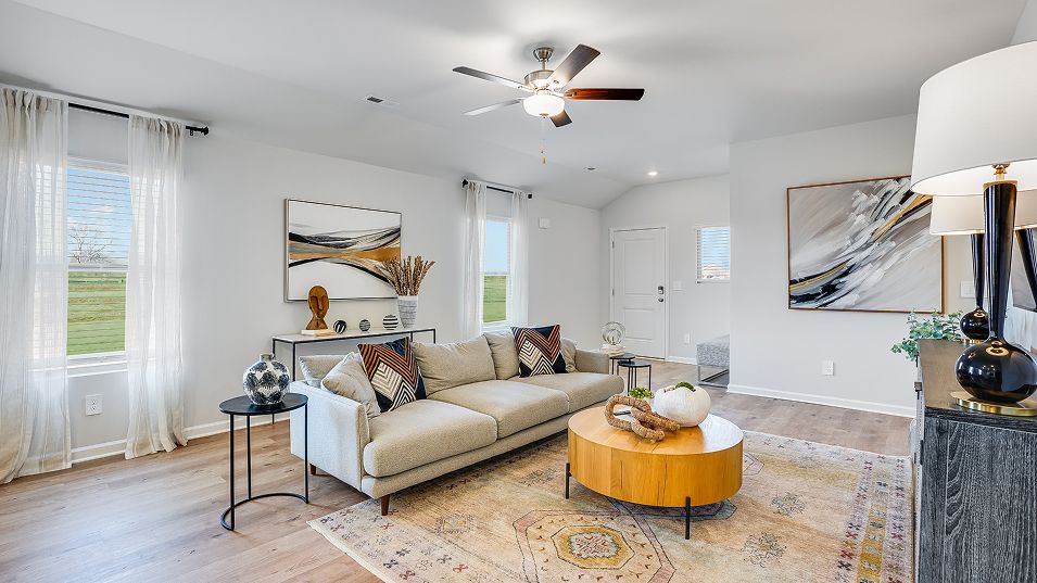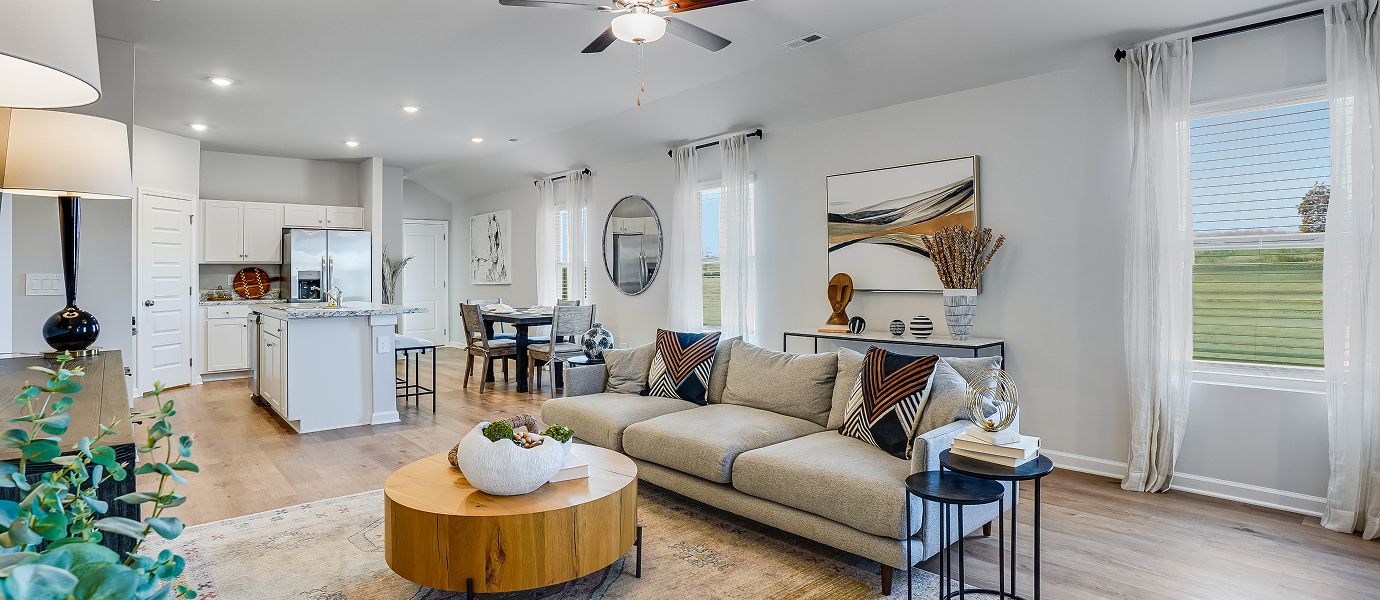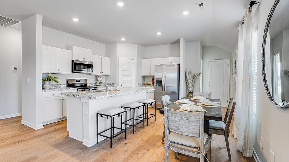 This new single-story home offers ample space to live and grow. An open-concept floorplan boasts convenient access to a covered patio for seamless entertaining and leisure. Two bedrooms are tucked away to the side for optimal comfort, while the peaceful owner’s suite is nestled at the back of the home with a private bathroom and walk-in closet.