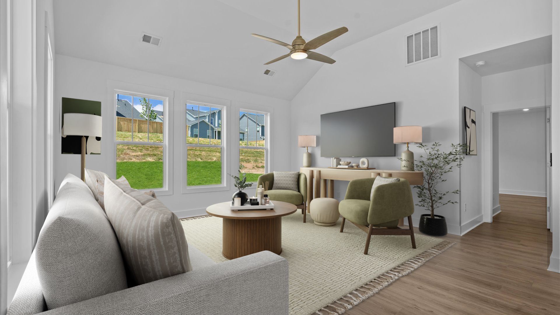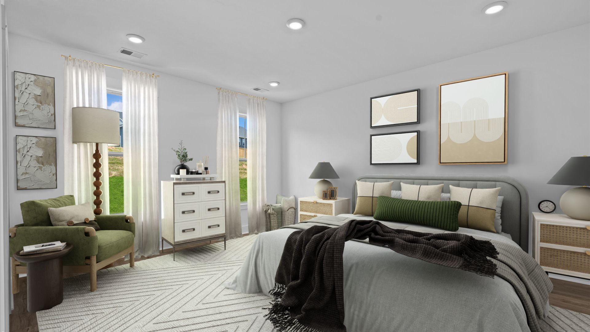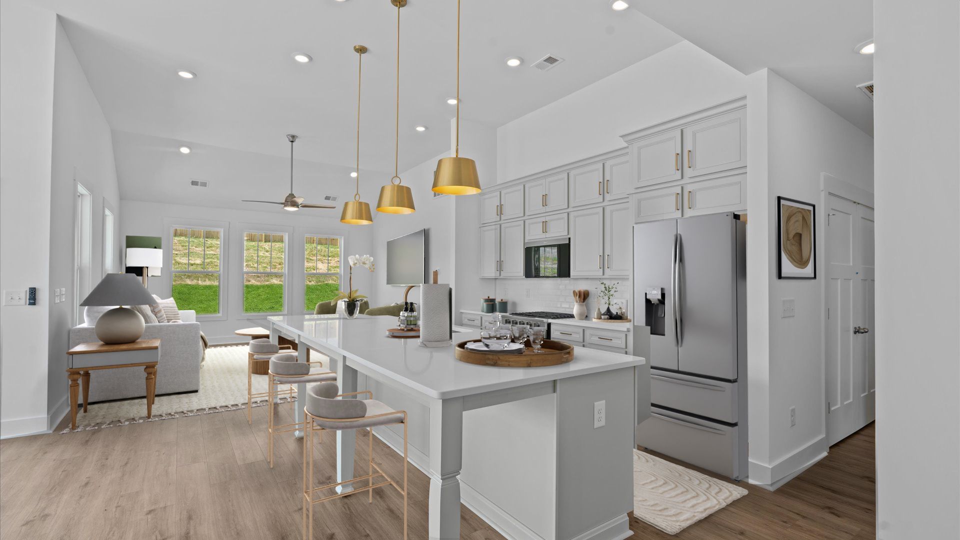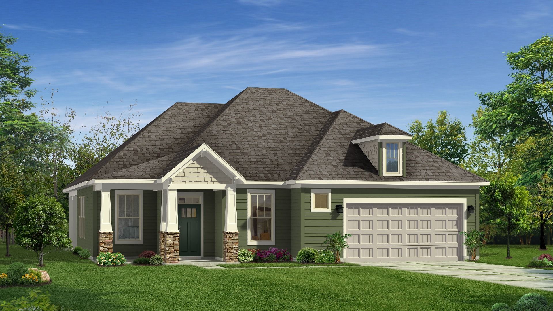 Thoughtful Layout with Convenience at Every Turn Open & Inviting Main Level Expansive kitchen with oversized island overlooking family room and breakfast area Open layout ideal for entertaining and everyday living Main-Level Owner’s Retreat Spacious primary suite with large walk-in closet and en suite bath with dual vanities, walk-in shower, private water closet, and linen closet Convenience & Function Two additional bedrooms with shared full bath featuring dual vanities Powder room, laundry room, and three additional closets Private entry from attached two-car garage Outdoor Living Generous rear patio with optional wrap-around screened or covered porch Upper-Level Flex Space Bonus room with storage, convertible to bedroom with full bath and additional storage