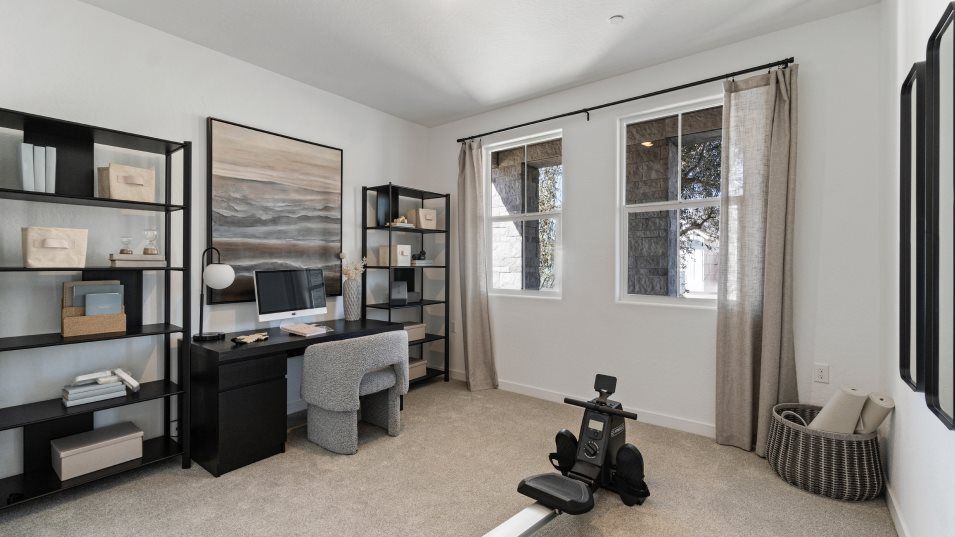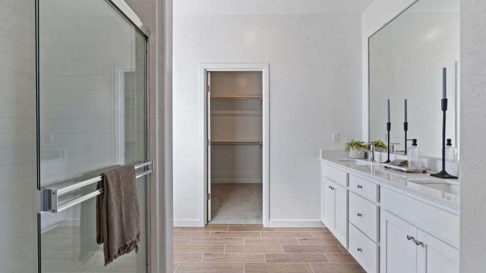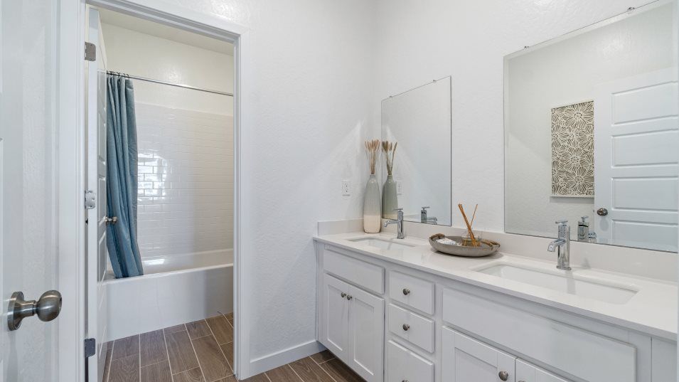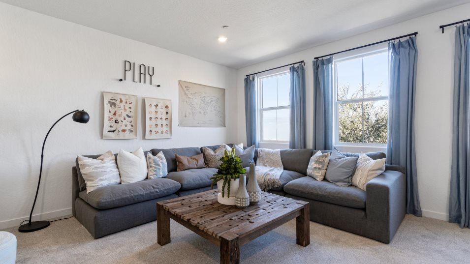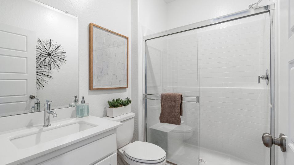 On the first floor of this new two-story home is a spacious and flexible open-concept layout with access to a patio for seamless entertaining and multitasking. A bedroom and full bathroom are located off the foyer. On the second floor, three bedrooms surround a versatile loft, including the lavish owner’s suite with a spa-inspired bathroom and walk-in closet.