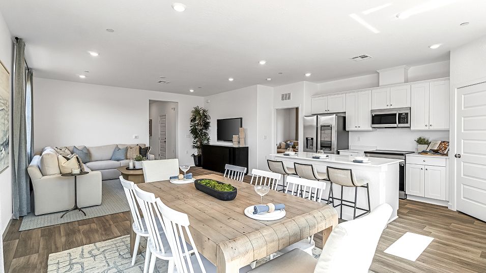 This new two-story home is ready for modern lifestyles. An open-concept layout combines the kitchen, living and dining areas for enhanced multitasking and transitions with a secluded office on the first floor. A bedroom at the back boasts convenient access to a spacious and flexible family room. On the second level are four additional bedrooms, including the lavish owner’s suite toward the back of the home, offering direct access to a spa-inspired bathroom and generous walk-in closet.