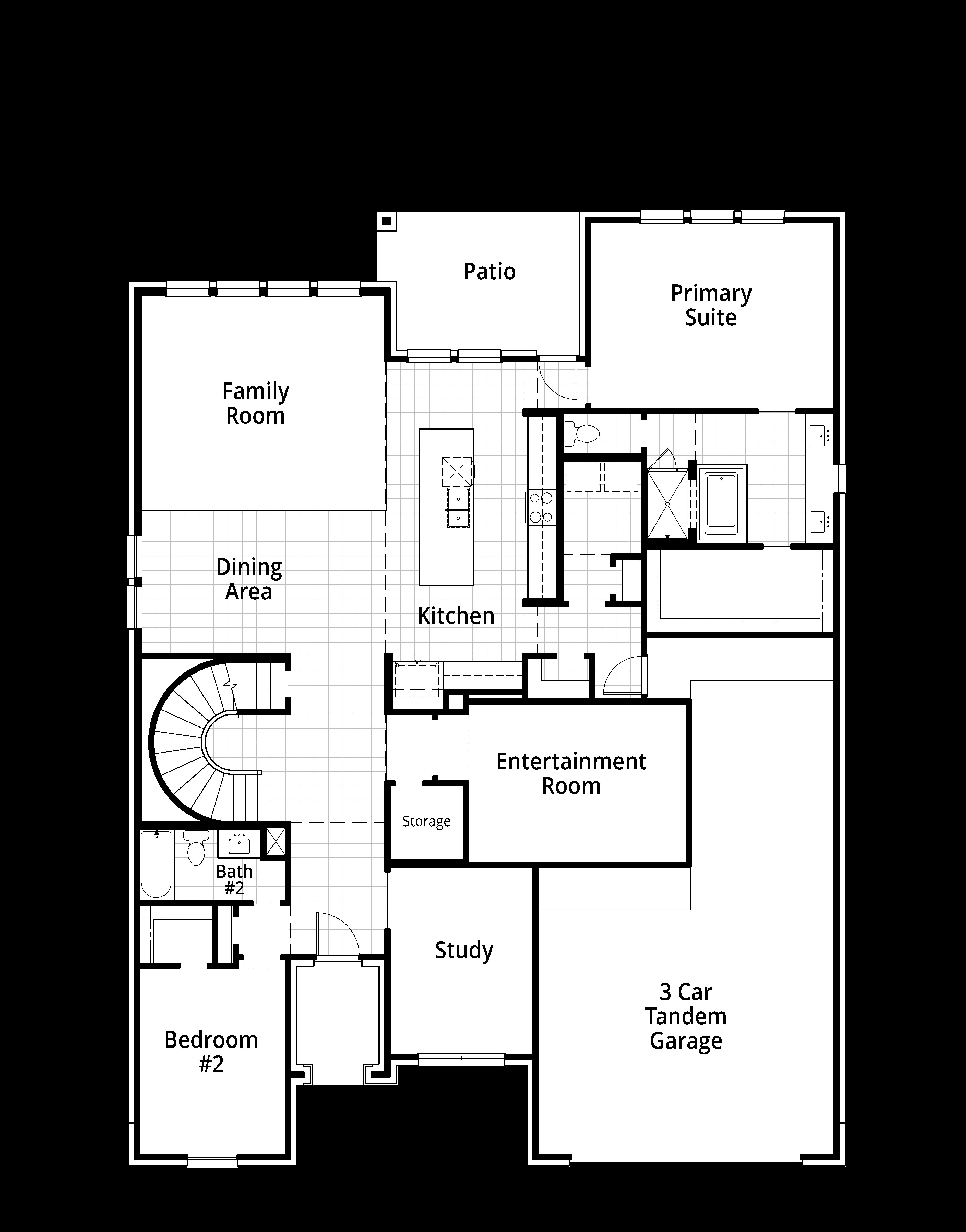 The Leyland is an expansive two-story home that offers 3,308 square feet of thoughtfully crafted living space. Upon entering, you are greeted by a grand foyer that leads to a study and a secondary bedroom with an adjacent bath. The striking curved staircase serves as a stunning centerpiece, guiding you to the upper level. The open-concept kitchen, featuring a large island, flows effortlessly into the dining and family rooms, with access to a patio for outdoor enjoyment. The main floor also includes a luxurious primary suite with a spacious bath, and an entertainment room for relaxation or gatherings. The three-car tandem garage provides ample storage and convenient home access. Upstairs, a game room and lifestyle room offer versatile spaces for leisure and entertainment, while the third an...