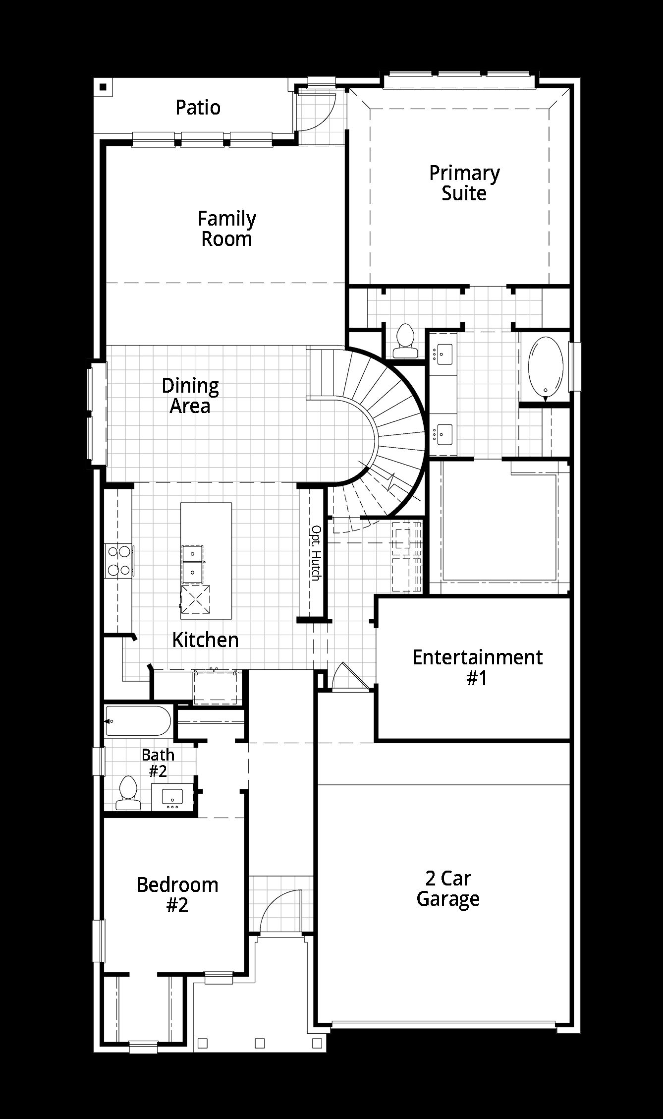 The Panamera plan perfectly balances style and functionality. The main floor features an open-concept kitchen and dining area, flowing into a spacious family room that opens to a cozy patio. The stunning curved staircase also adds a touch of sophistication. Tucked at the rear of the home is the luxurious primary suite with an ensuite bathroom. Bedroom two is conveniently located near a full bathroom, and an entertainment room which provides a versatile space for relaxation or gatherings. The two-car garage offers ample storage and parking. Upstairs, a loft area provides additional living space, along with bedrooms three and four, each with access to full bathrooms. The open-to-below design enhances the sense of space and connection throughout the home, making it ideal for modern family l...