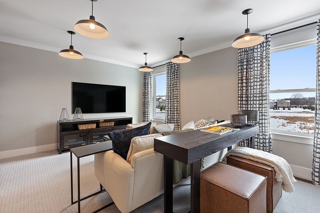 The Princeton is a two-story home with 4 bedrooms, 2.5 bathrooms, and more than 3,100 sq. ft. of living space. The first floor showcases a dining room and living room off the foyer, great room that opens to the kitchen and eat-in nook, den, and a mud room with a walk-in closet. The second floor features a laundry room; primary suite with a full bath, walk-in closet, and sitting room; and three secondary bedrooms with walk-in closets. Looking for a new home in Southeast Michigan? Contact our sales team to learn more about the Princeton! We can’t wait to meet with you and discuss building your dream home with Lombardo Homes! *All dimensions are approximate. Drawings and photos are for illustrative purposes only. Information is subject to change without notice. Not all floor plans or options...