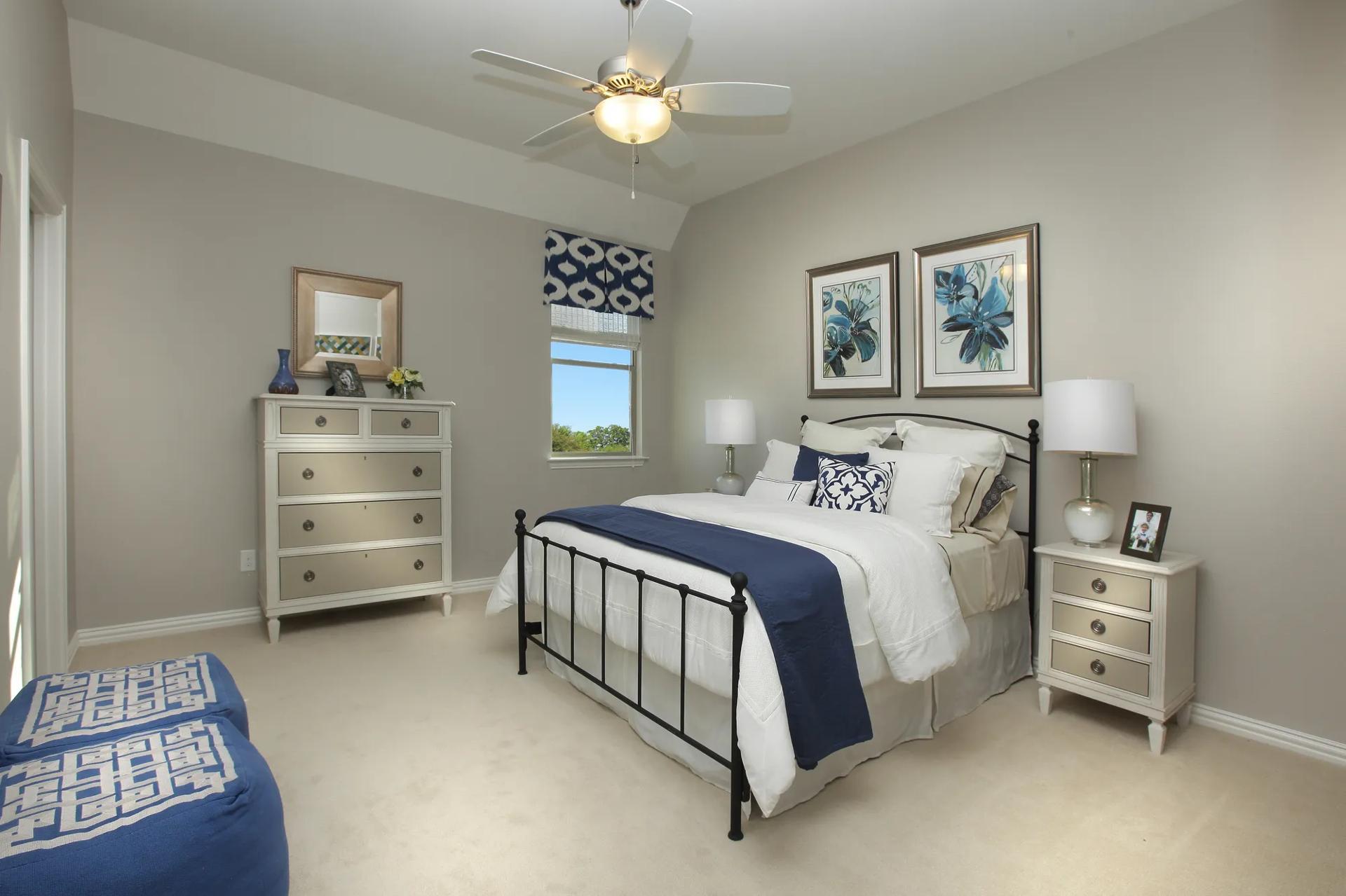 Starting with the 'J' courtyard garage, the Ravenna floor plan refreshes with its modern lines and custom, luxury touches throughout the home. Your eye is swept up into the open space of the foyer by a gorgeous curved staircase. To one side of this space is a sizeable, open study, and a semi-private guest/2nd bedroom suite lies on the other side. The "living quad" features rich appointments: a warming fireplace in the family room, a kitchen island that serves four, custom cabinetry, an ample walk-in pantry, a pocket office, a tray ceiling in the dining room, and an outdoor living area. The splendid first-floor owner's suite spotlights a dramatic tray ceiling, resort-like bath, and extensive walk-in closet. The upstairs opens onto a cozy loft which leads to two or three spacious bedroom sui...