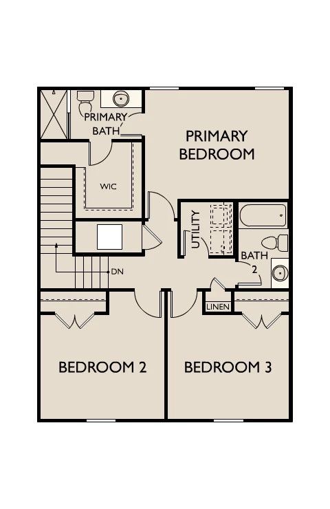 Enter through the covered porch into the foyer, where a powder bath and two-car garage are thoughtfully positioned for convenience. Continue into the heart of the home — an open layout that includes the kitchen, dining area, and family room. A covered porch just off the dining area extends your living space outdoors. The second floor opens to a versatile loft that links four bedrooms and a centrally located laundry room. The primary bedroom offers a spacious retreat with a private bath and walk-in closet, while the remaining bedrooms share a well-appointed bathroom.