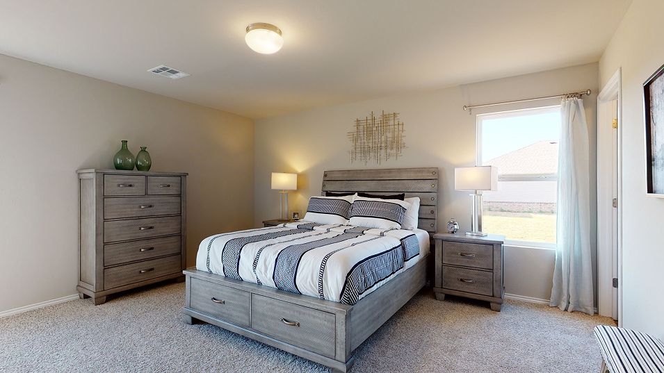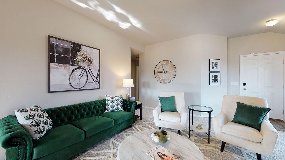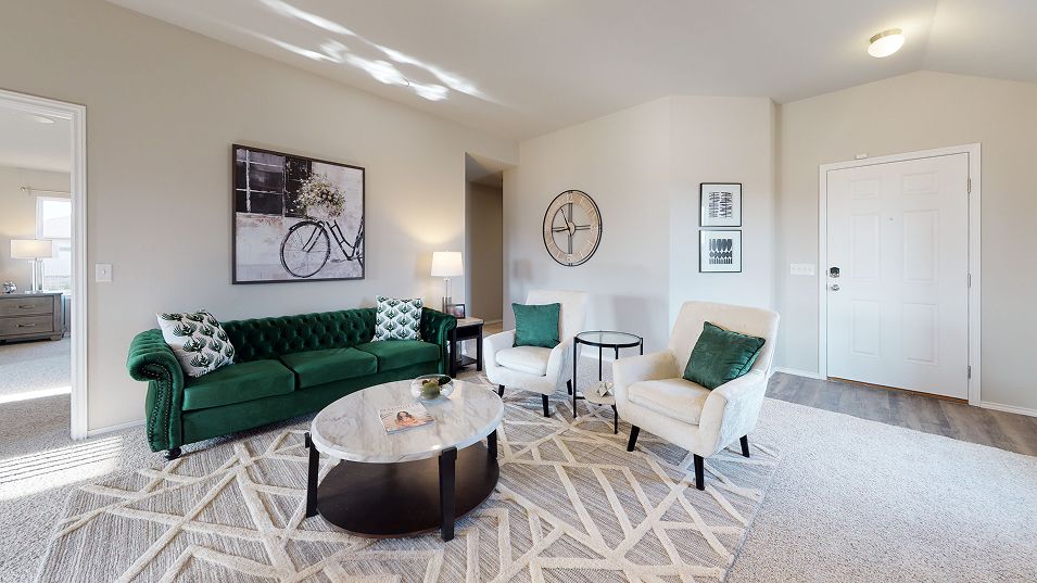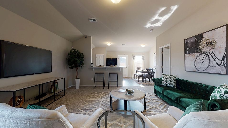 This new three-bedroom home provides convenient single-story living. An open-concept layout blends the kitchen, living and dining areas to maximize interior space, while two secondary bedrooms provide a comfortable retreat for both guests and residents. The luxurious owner’s suite is nestled into a private rear corner and features a full bathroom and walk-in closet.