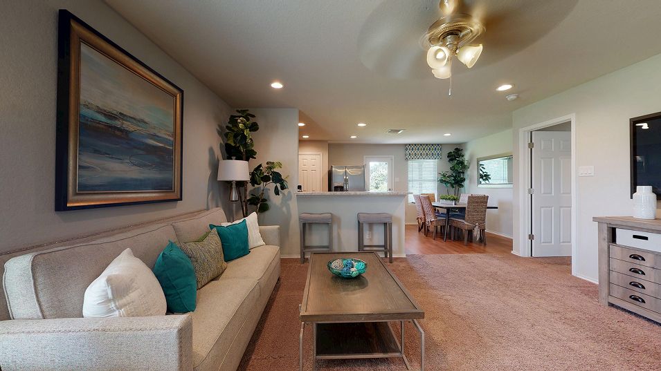 This new single-story home is host to a spacious and flexible open-concept layout shared between the kitchen, living and dining areas for simple everyday transitions and multitasking. Two bedrooms share a private hallway, while the luxe owner’s suite boasts a private location at the back of the home, complete with a full bathroom and walk-in closet.