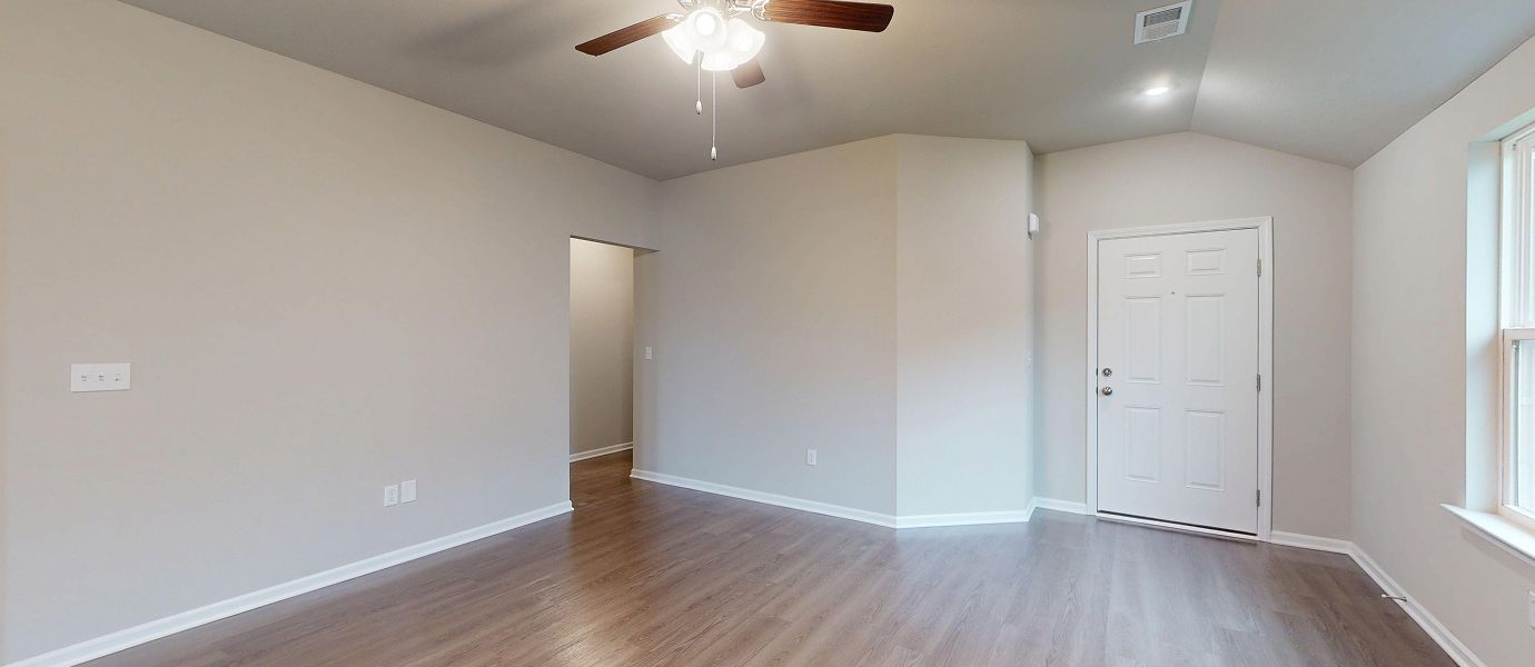 This new single-story home is host to a spacious and flexible open-concept layout shared between the kitchen, living and dining areas for simple everyday transitions and multitasking. Two bedrooms share a private hallway, while the luxe owner’s suite boasts a private location at the back of the home, complete with a full bathroom and walk-in closet.