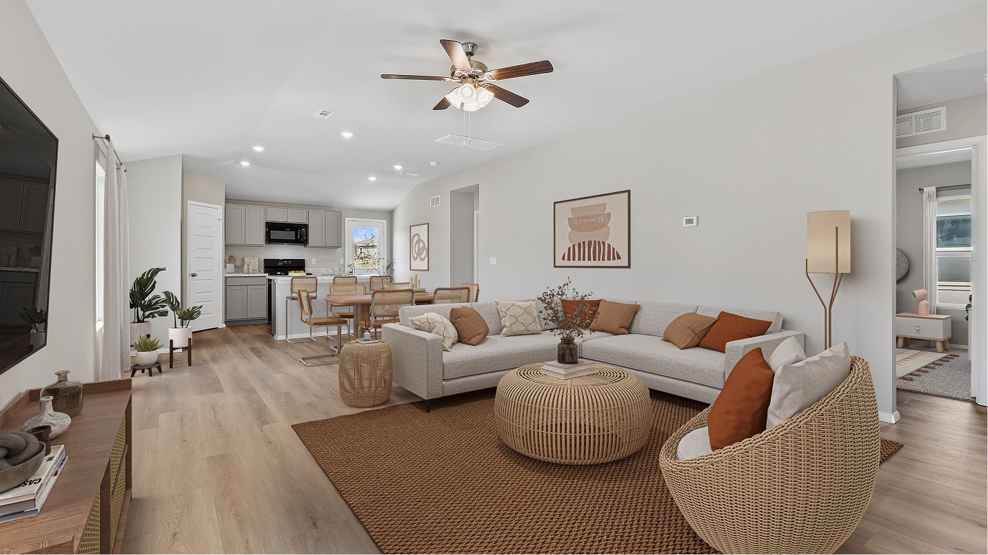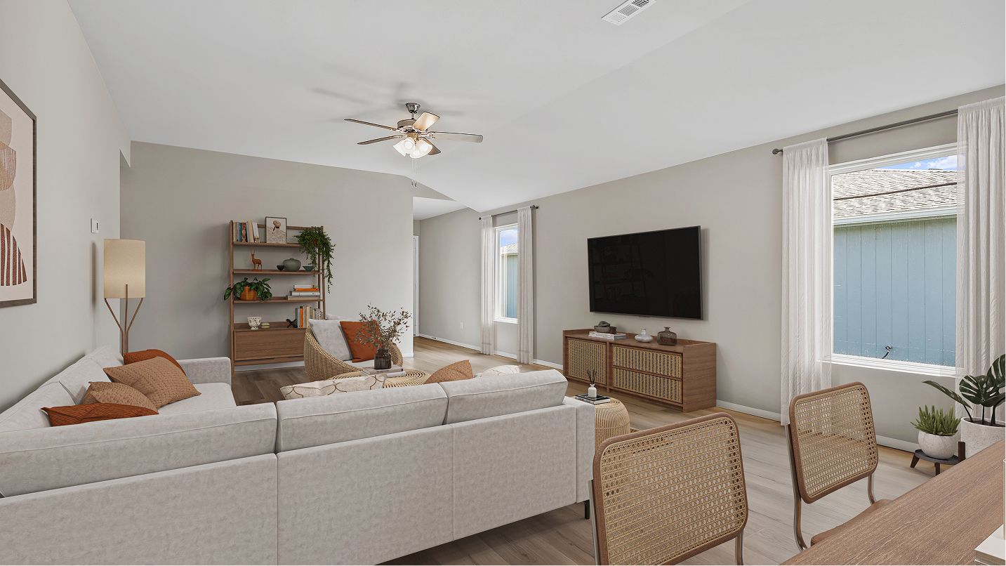 This new home design provides low-maintenance, single-level living while maximizing space. Upon entry is a welcoming family room with direct access to an intimate dining room and a well-equipped kitchen with a center island. On the opposite side of the floorplan are two secondary bedrooms and a private owner’s suite complete with an attached bathroom. Rounding out the home is a convenient two-car garage.