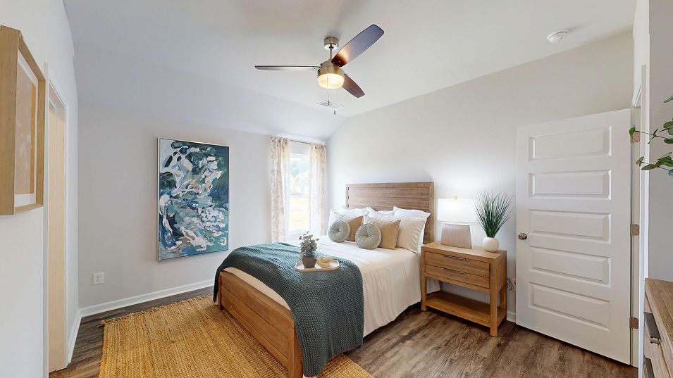 This new single-story home blends style with functionality. Two secondary bedrooms share a bathroom in the hall at the front of the home, while the owner’s suite is tucked into the back corner with a private bathroom. Down the hall is the free-flowing main living area, which includes a kitchen with a center island, a welcoming family room and a dining room with a covered rear patio. A convenient two-car garage completes the home.