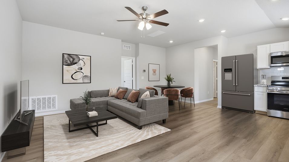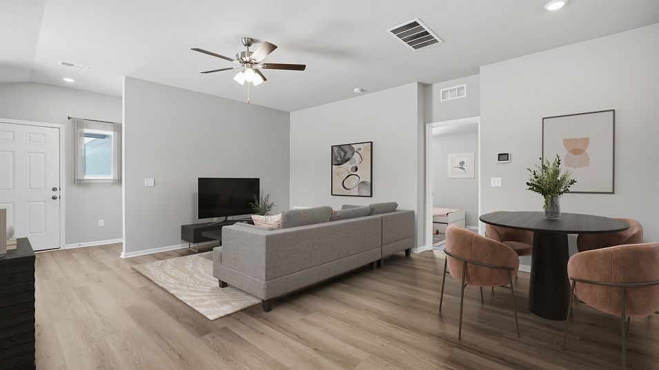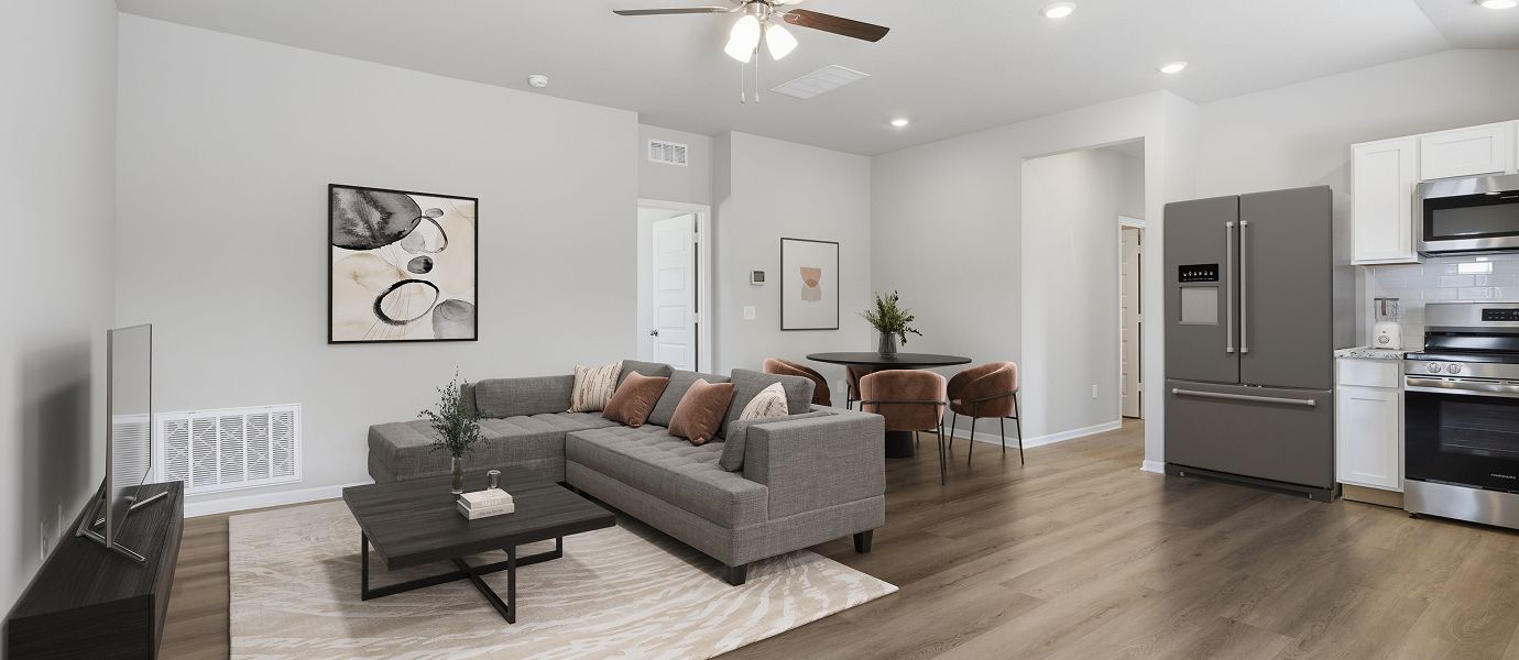 This single-story home is designed for modern lifestyles. A spacious and flexible open-concept layout combines the kitchen, living and dining areas to maximize interior space. One bedroom is tucked away to the side, with two additional bedrooms located at the back of the home, including the tranquil owner’s suite with a full bathroom and walk-in closet.
