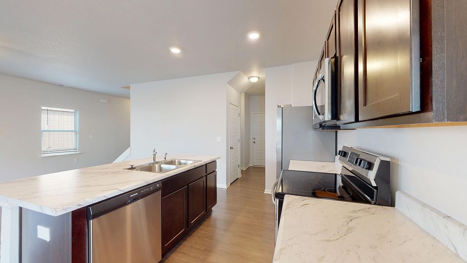 This new single-family home showcases two stories of gracious living space. Upon entry is the sun-drenched living room with direct access to an open-concept kitchen and an intimate dining area, while nearby is the rear patio for outdoor moments. All three bedrooms ideally reside upstairs to provide maximum privacy, including the owner’s suite with an attached bathroom and walk-in closet.