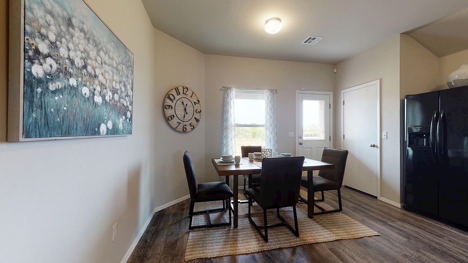 This new single-story home is perfect for modern lifestyles. An inviting open-concept layout blends the kitchen, living and dining areas to maximize interior space, with a nearby covered patio for simple indoor-outdoor living. All three bedrooms are tucked away to the side for optimal comfort and privacy, including the luxe owner’s suite at the back of the home with a full bathroom and walk-in closet.