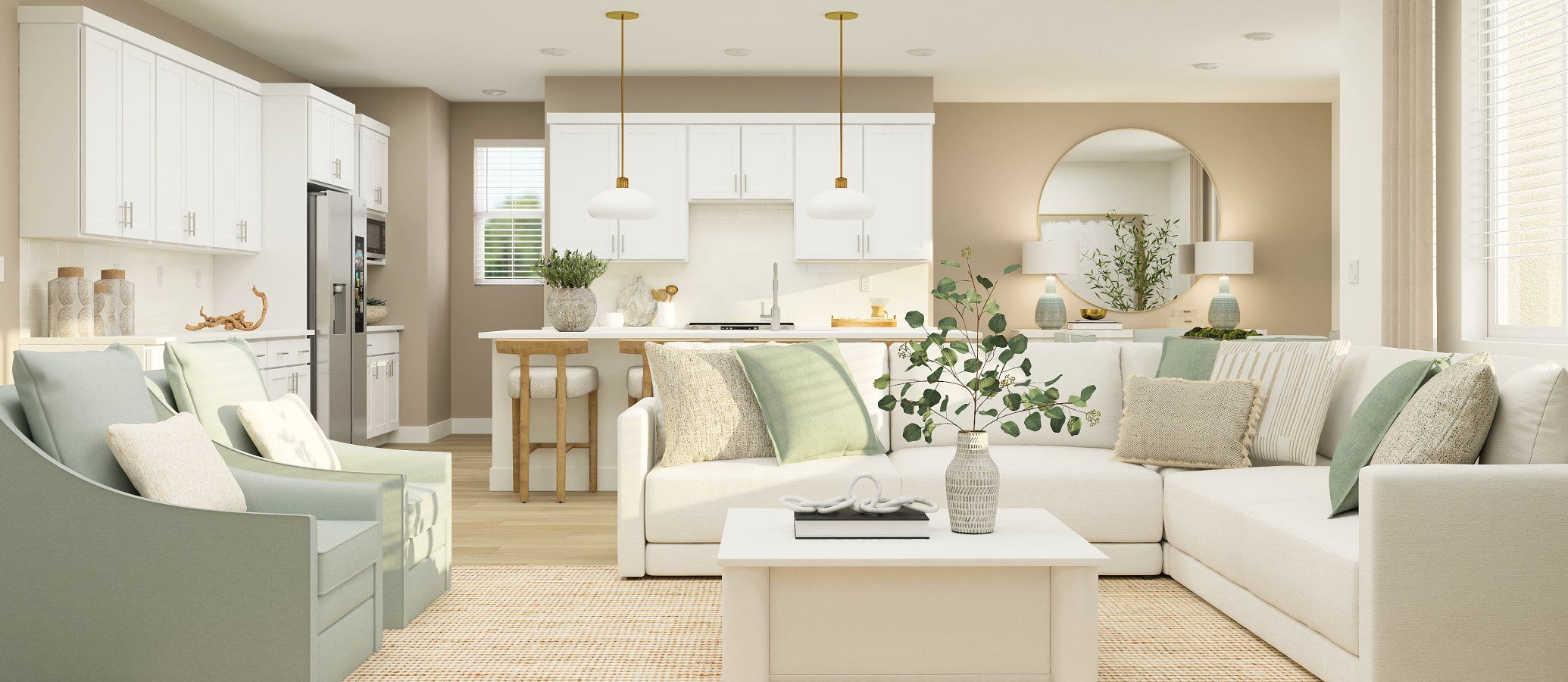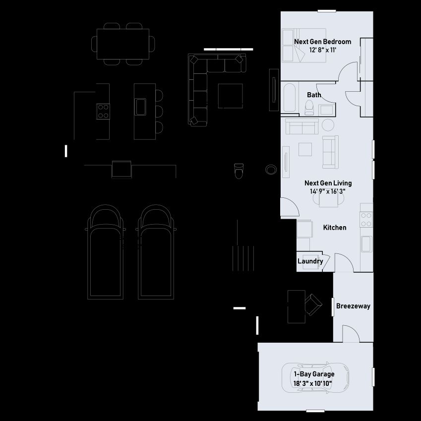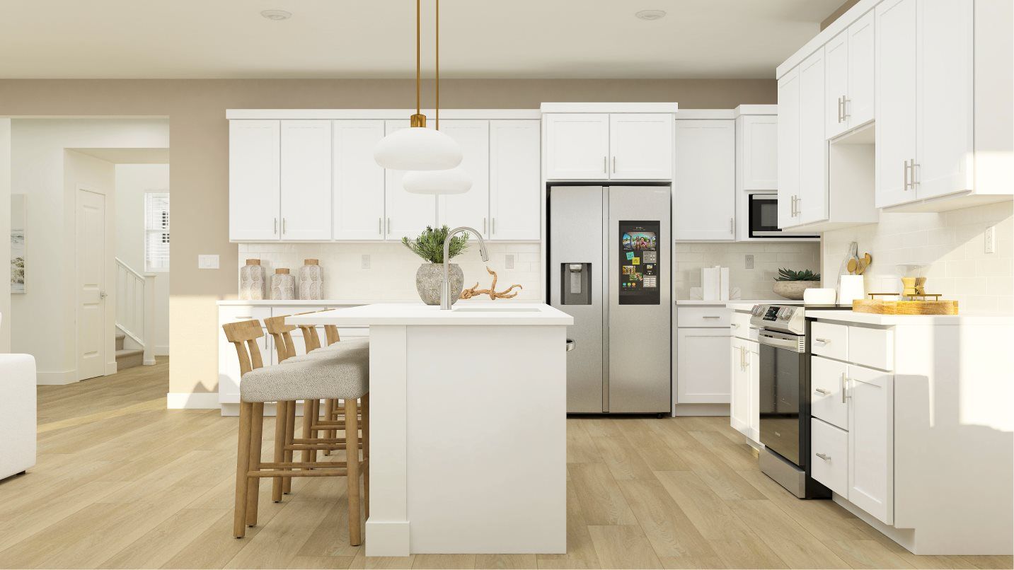 This two-story home features Lennar’s Next Gen® suite, offering a private retreat complete with its own entrance, bedroom, living area and more. Off the foyer is a convenient office leading to an open-concept floorplan that combines the kitchen, dining room and family room. On the second floor are four bedrooms and a versatile loft, including the owner’s suite tucked into a private rear corner.