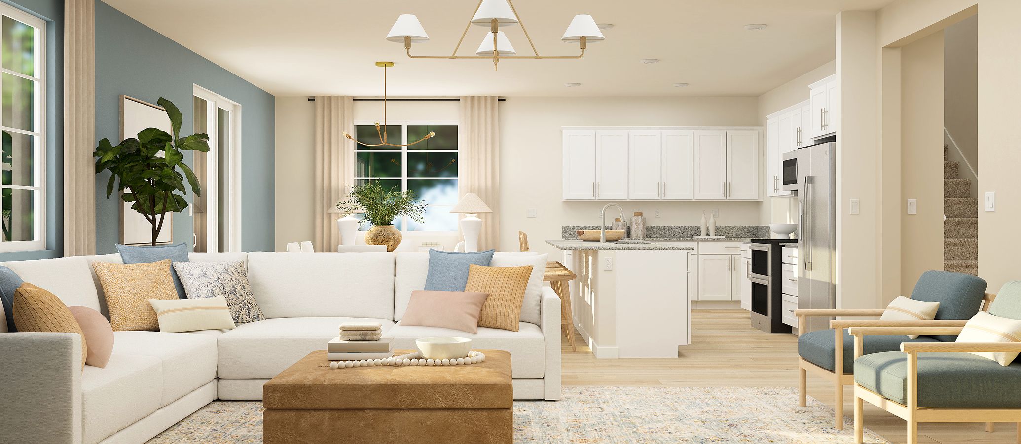 This new two-story home features a modern and low-maintenance layout. An open-concept floorplan on the first floor blends the kitchen, living and dining areas, and a convenient bedroom is located near the front of the home off the foyer just steps from a full bathroom. Four additional bedrooms can be found on the second level, including the luxe owner’s suite, surrounding a versatile and inviting loft.