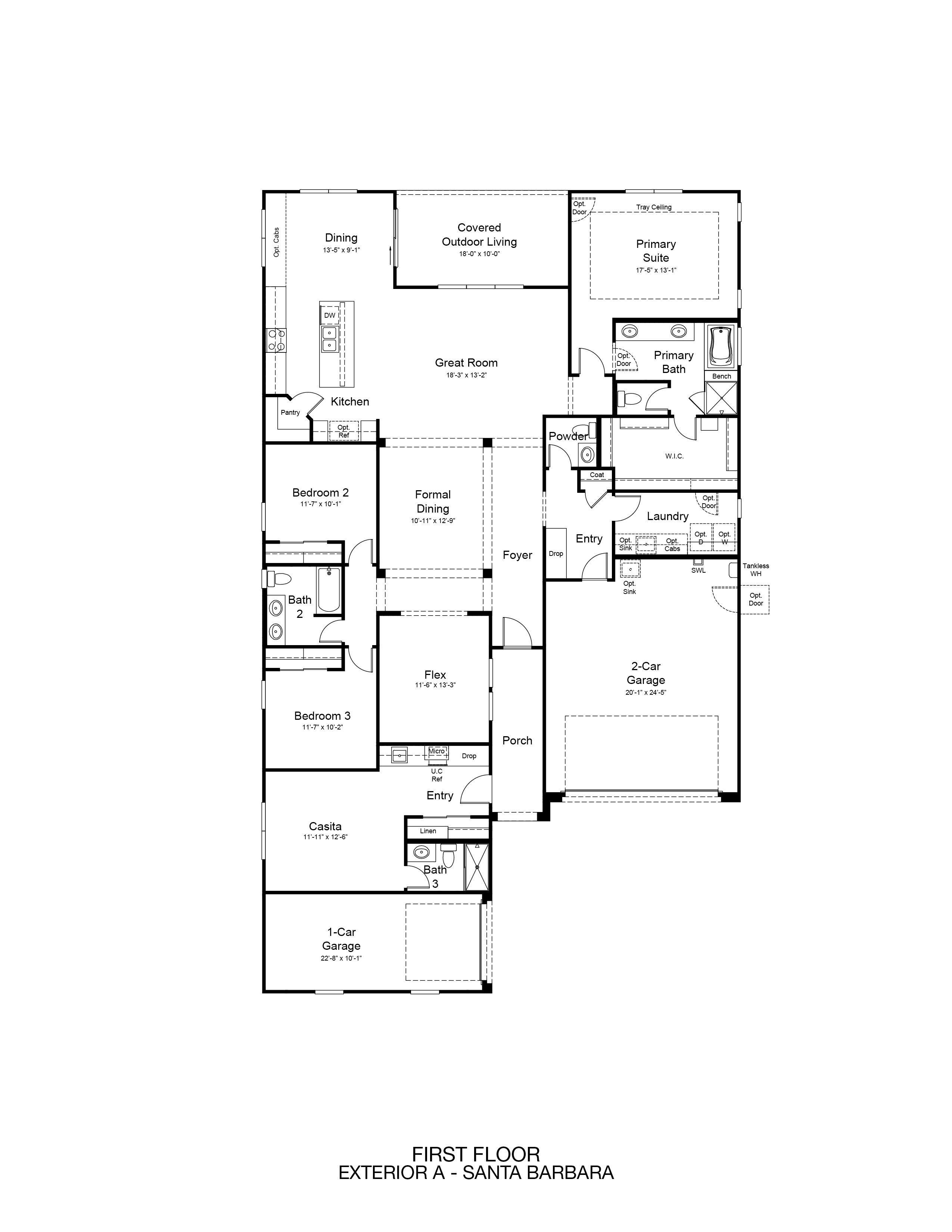This 2,660-square-foot home offers a smart, versatile layout featuring three bedrooms, three baths, and a convenient powder room. The heart of the home includes open casual dining, a spacious living area, and a separate formal dining room for special occasions. A flexible flex room adapts easily to work or leisure needs. A private casita provides an ideal space for guests or multigenerational living. The three-car garage, complete with a separate bay, adds valuable storage and functionality.