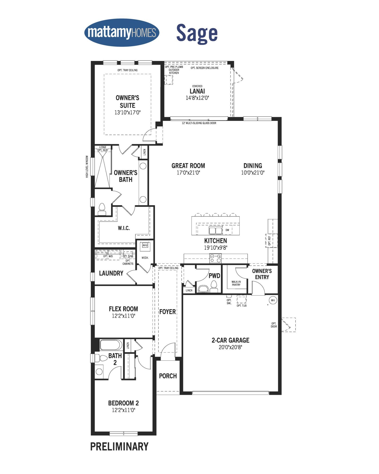 The Sage is a single-family home design with 2,193 sq. ft. of vast living space and thoughtful Mattamy features. The welcoming foyer has convenient powder bath on the way to the open concept living area. This magnificent space is full of natural light, thanks to numerous windows and a 12-foot multi-sliding glass door leading to the covered lanai, which is perfect for enjoying the Florida lifestyle. The kitchen has a walk-in pantry, designer cabinets and a breakfast bar to keep everything tidy. The open space of the combined dining area and Great Room are perfect for relaxing or entertaining. Bedroom 2 has its own private full bath and linen closet. The luxurious owners suite offers an expansive walk-in closet, linen closet and bath with a large shower. *Each home includes many energy-effi...