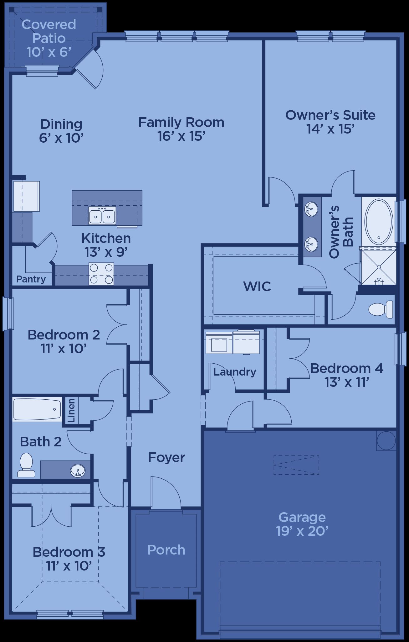 The San Jacinto offers 1,861 square feet of thoughtfully designed living space in a modern single-story layout. This 4-bedroom, 2-bathroom home features an open-concept living and dining area—perfect for everyday living and entertaining. The spacious primary suite includes a private ensuite bath with dual sinks, a soaking tub, and ample closet space. Three secondary bedrooms provide flexibility for family, guests, or a home office. With its smart layout and comfortable design, the San Jacinto combines style, functionality, and value in one inviting floor plan.