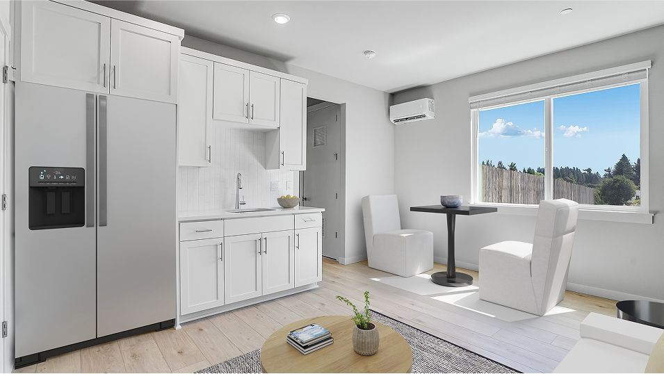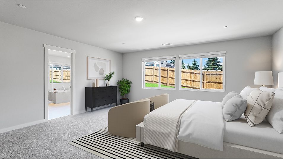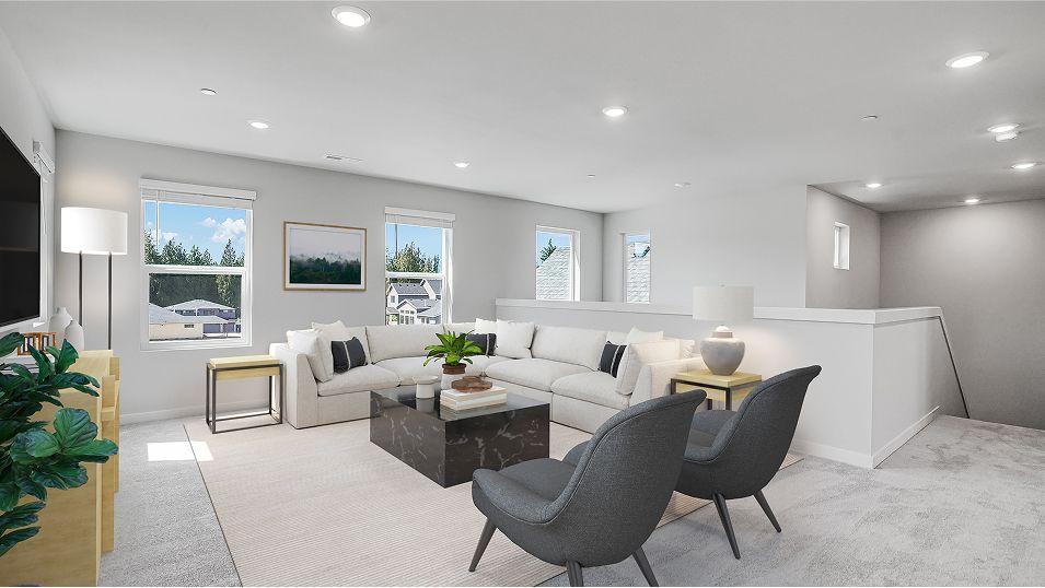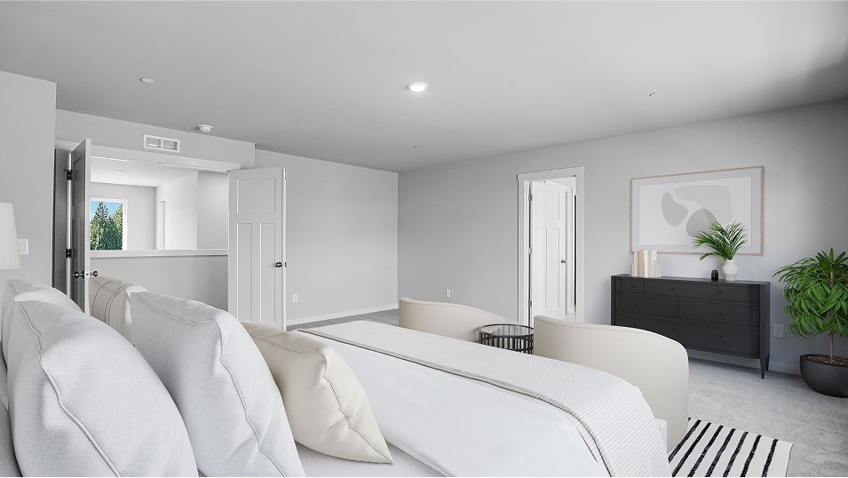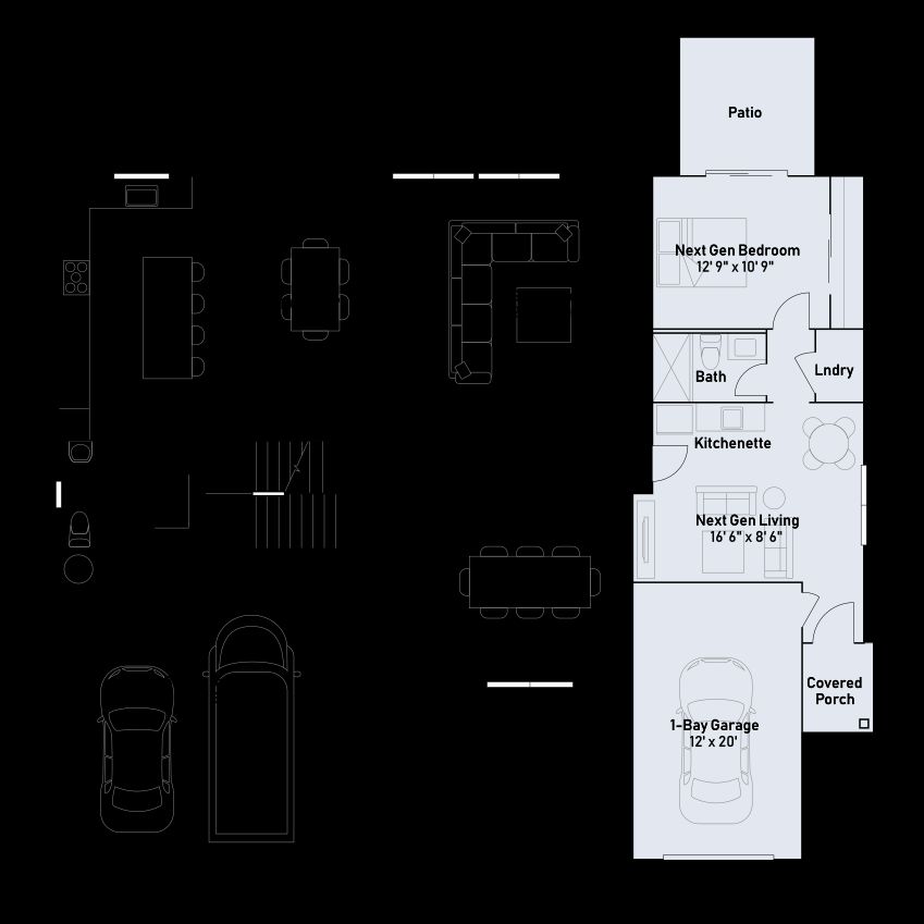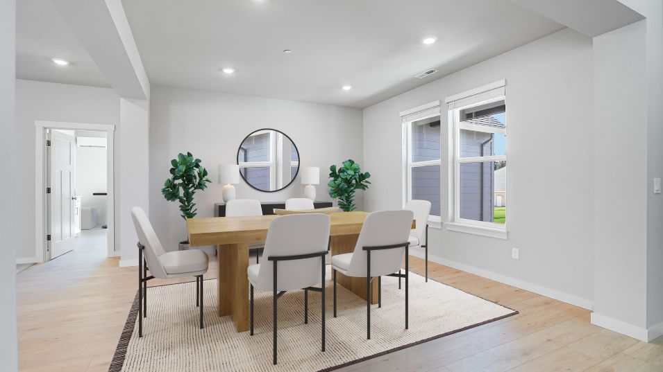 This Next Gen® home features a private suite with a separate entrance, living area, bedroom and more, perfect for independent living and multigenerational households. The main part of the home features an inviting open-concept layout on the first floor with convenient access to an outdoor patio, with a formal dining room off the foyer. On the second floor, a versatile loft offers a shared living space easily reached from any of the four upstairs bedrooms, including the luxurious owner’s suite.