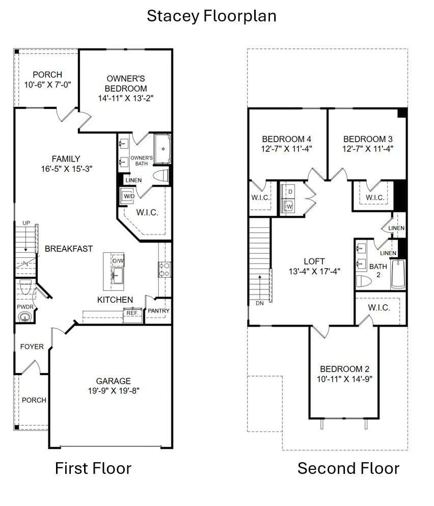 The Stacey floor plan offers a spacious and flexible design with 2,174 square feet of thoughtfully planned living space, perfect for modern families. The first floor welcomes you with a charming front porch and foyer that open into an inviting open-concept layout. The kitchen, complete with a large island and pantry, flows seamlessly into the breakfast area and spacious family room, creating an ideal setting for entertaining, family gatherings, or everyday relaxation. The owner’s suite is conveniently located on the main level, providing a private retreat with a walk-in closet and en-suite bath. A nearby powder room, laundry area, and attached garage add comfort and functionality to daily living. Upstairs, the second floor is designed for versatility and extra space. Three additional bedro...