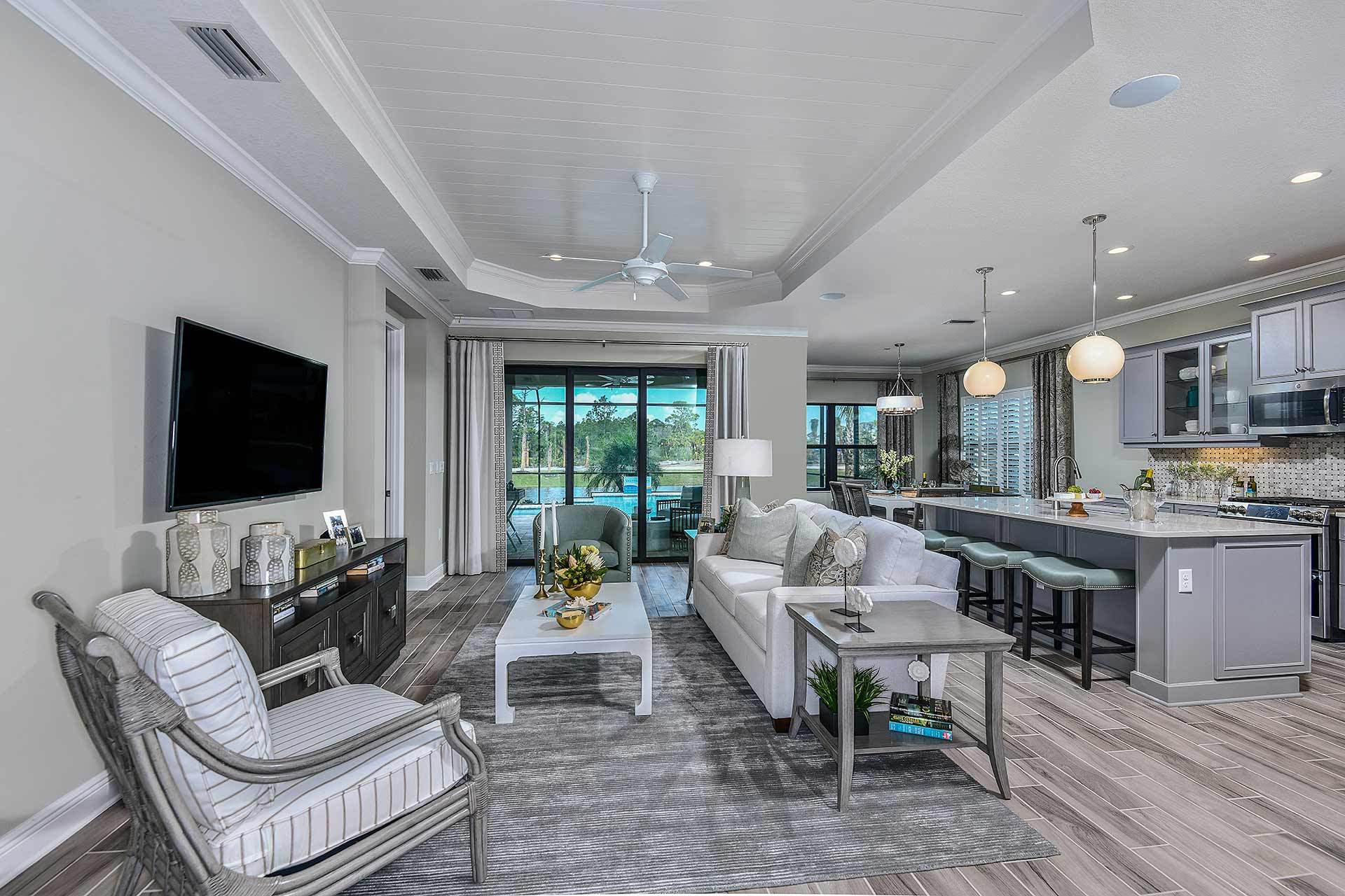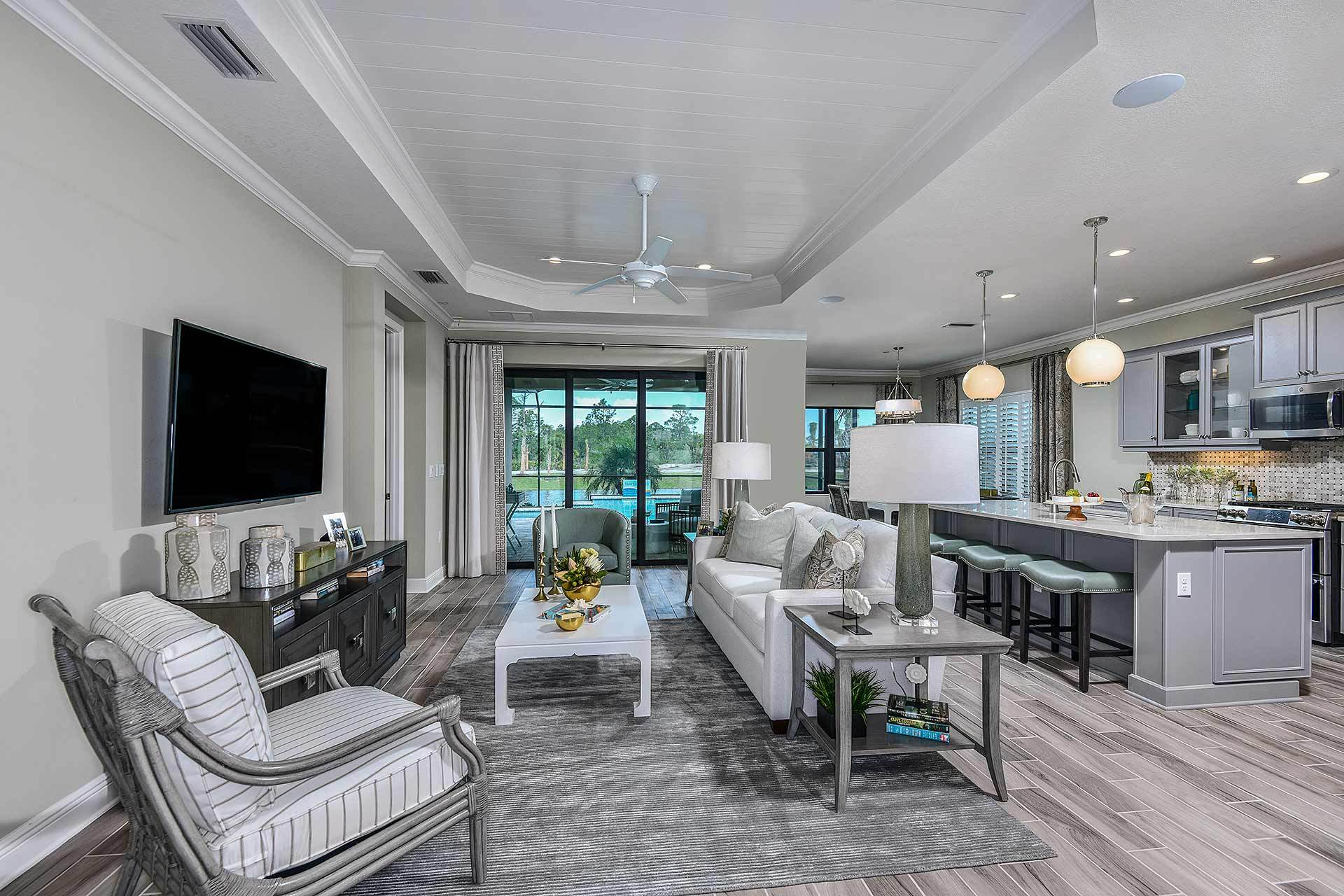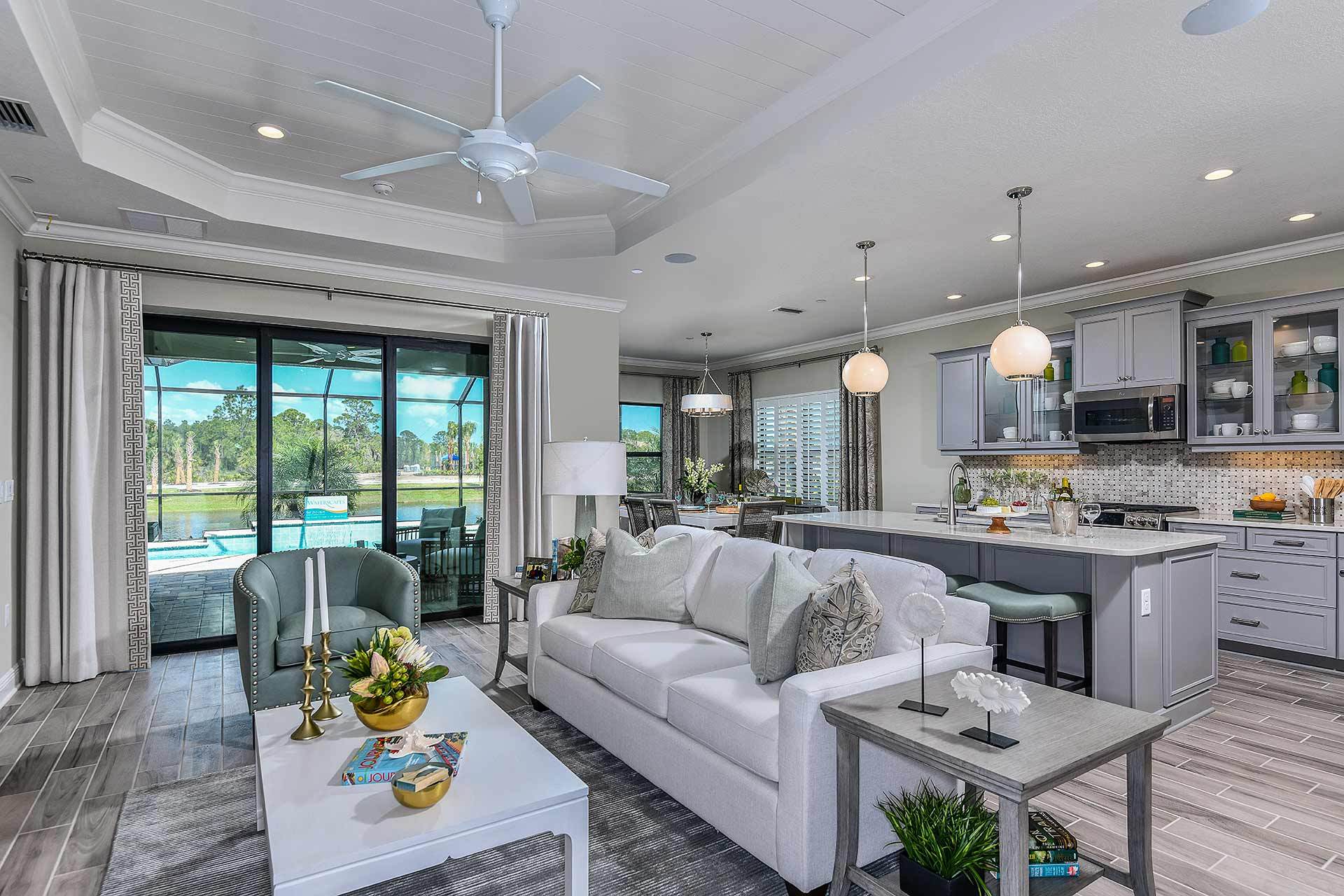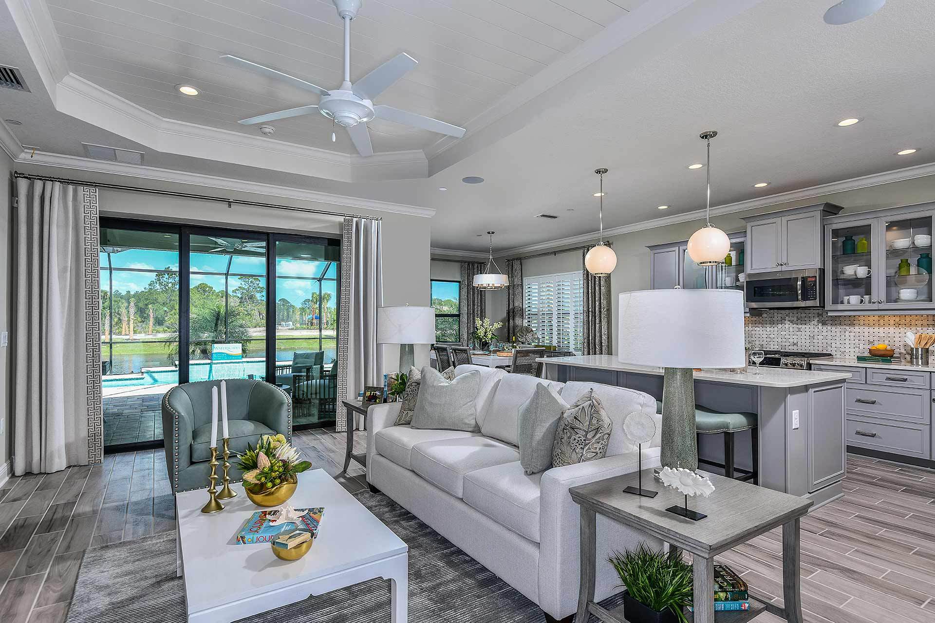 *Base price does not include the homesite premium or design options.* Expansive and accommodating, the Starlight 2 plan in Boca Royale Golf andamp; Country Club exemplifies the Southwest Florida lifestyle. A gallery opens to the beautiful great room with optional coffered ceiling and a view of the charming, covered lanai. The well-appointed kitchen features an island and a large walk-in pantry and dining nook, making the area perfect for whipping up snacks or creating special meals. The dining area includes an optional window, providing an entrancing view during meals. The inviting master suite provides a great start or end to your day, including options in the bedroom for a recessed ceiling. The suite also features two walk-in closets and a master bath with large walk-in shower, water clo...