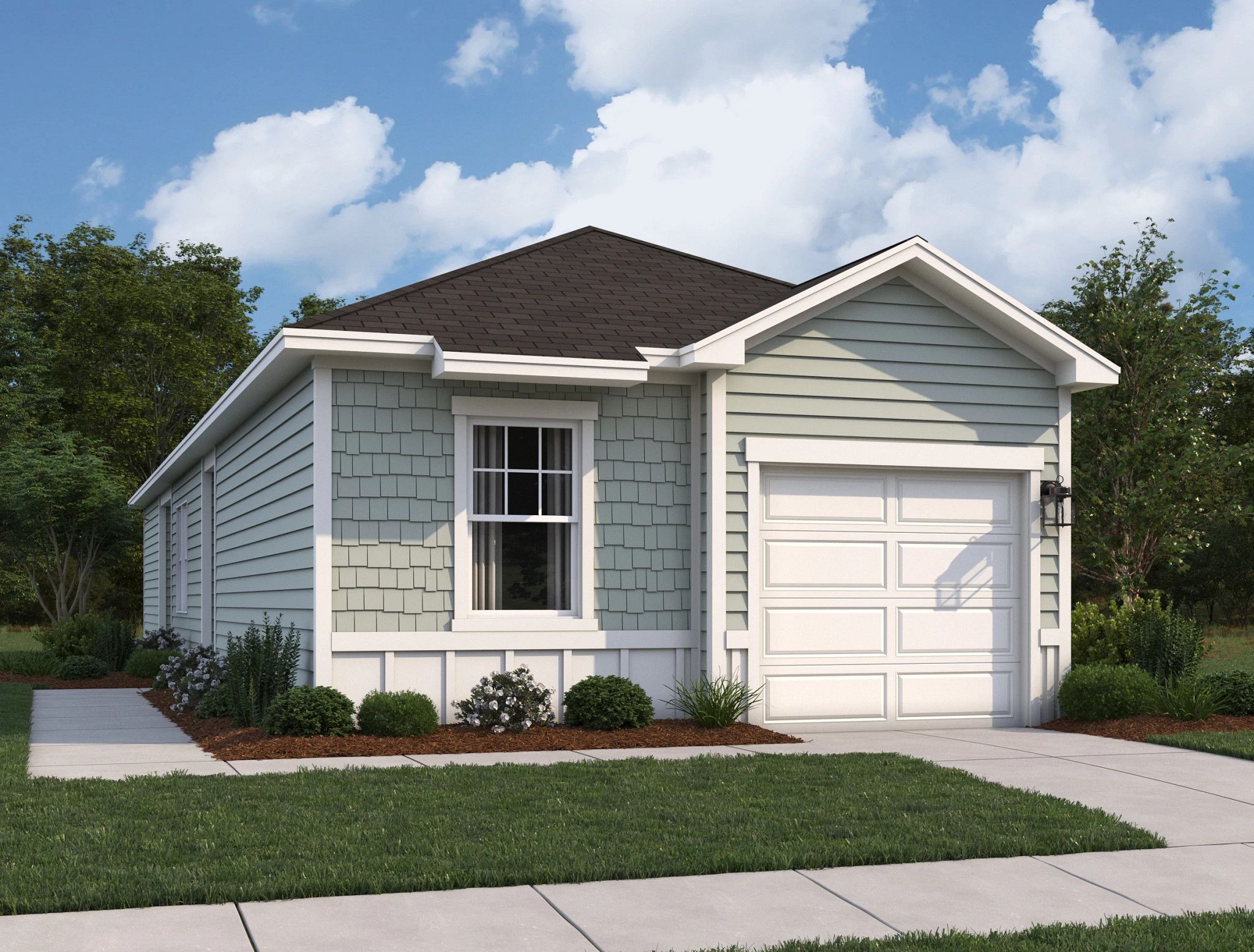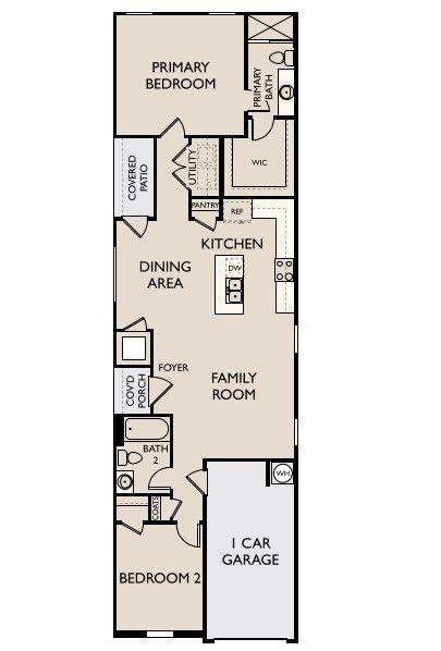 Step into the Sundial, where you’re immediately greeted by the open family room, dining area, and kitchen at one end. The primary bedroom, complete with a walk-in closet and private primary bath, is also located on this side, along with a convenient laundry room. On the opposite side, you’ll find an additional bedroom with a full bath and a one-car garage.
