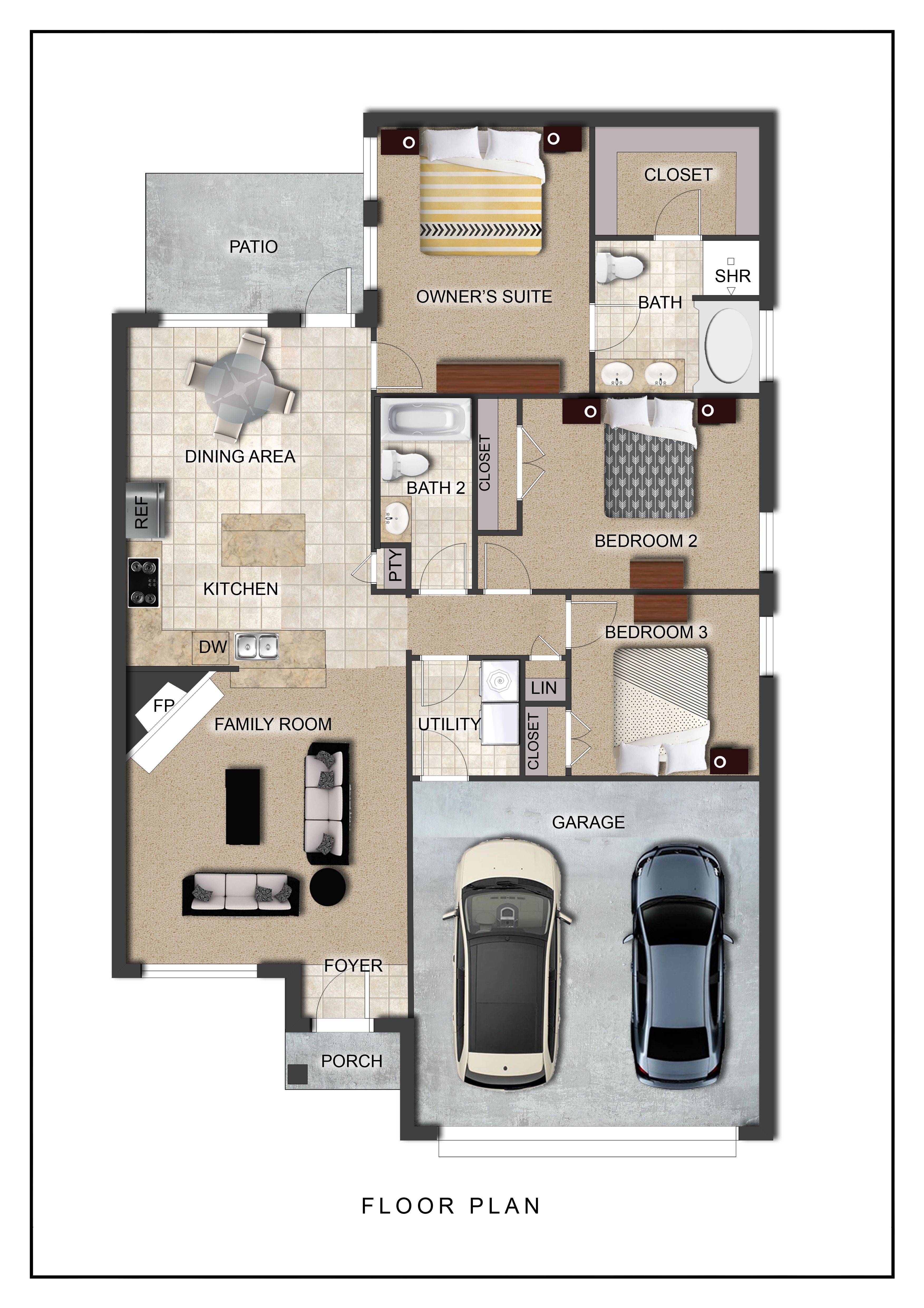 - 2 Car garage