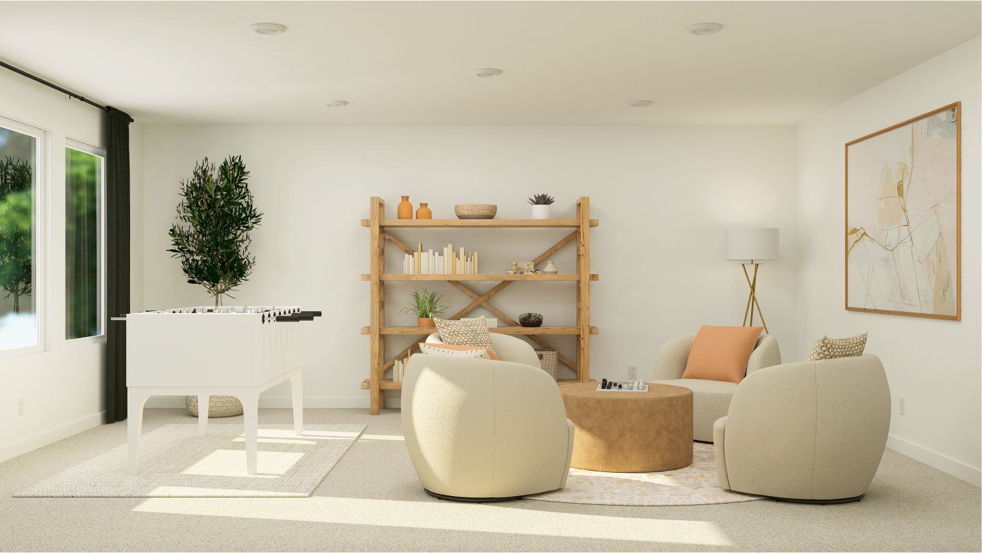 This two-story home shares an open layout between the kitchen, nook and family room for easy entertaining, along with access to the covered patio for year-round outdoor lounging. A luxe owner's suite is in a rear of the home and comes complete with an en-suite bathroom and walk-in closet. There are three secondary bedrooms at the front of the home, ideal for household members and overnight guests, as well as a flex space that can transform to meet the homeowner’s needs. A versatile game room is located on the second floor.