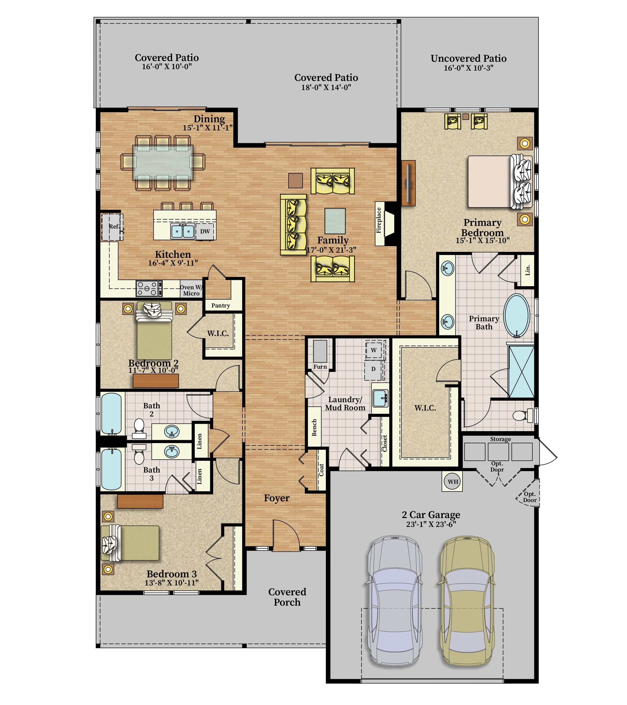 - 2 Car garage