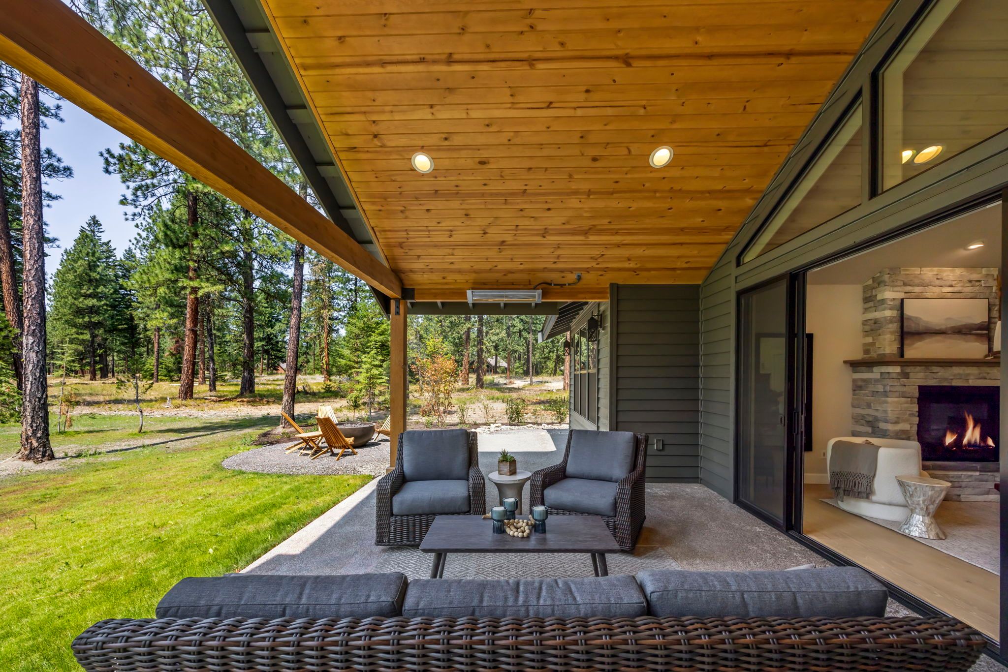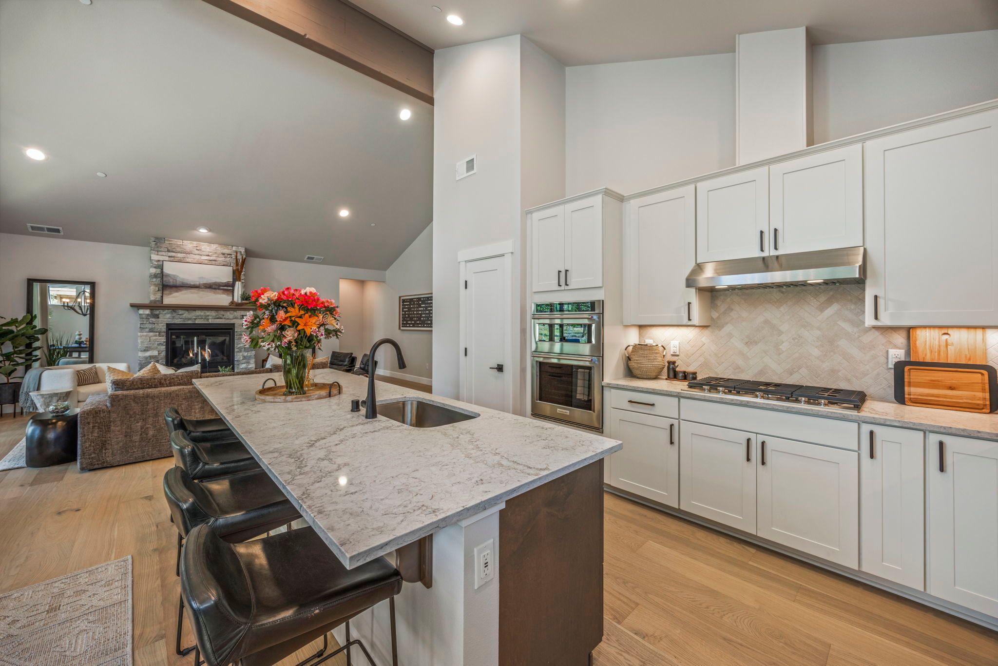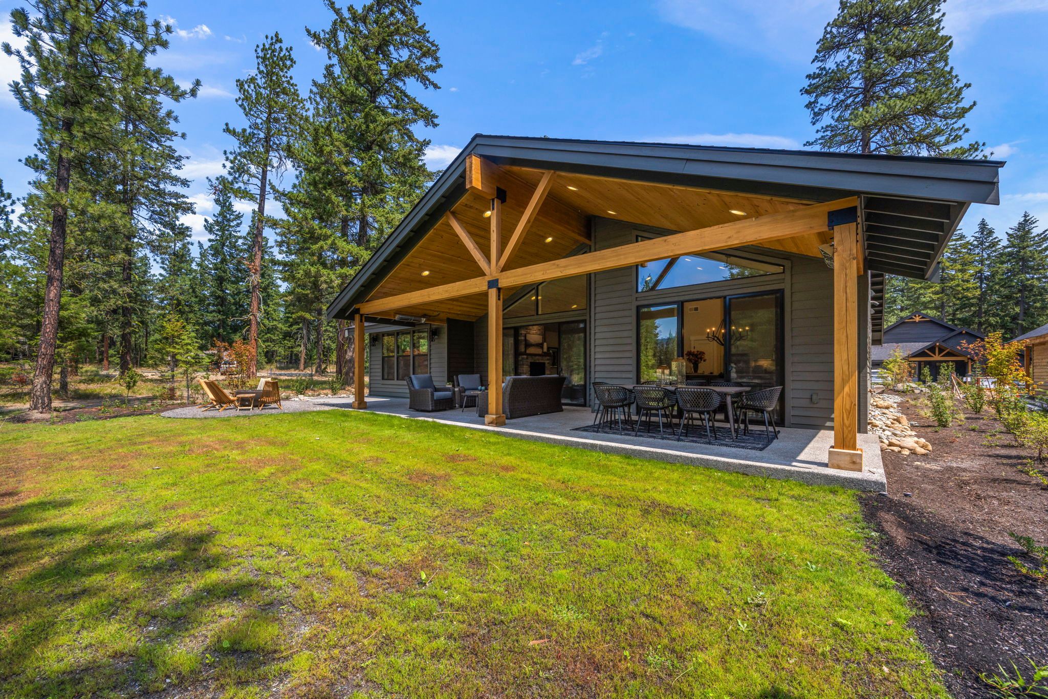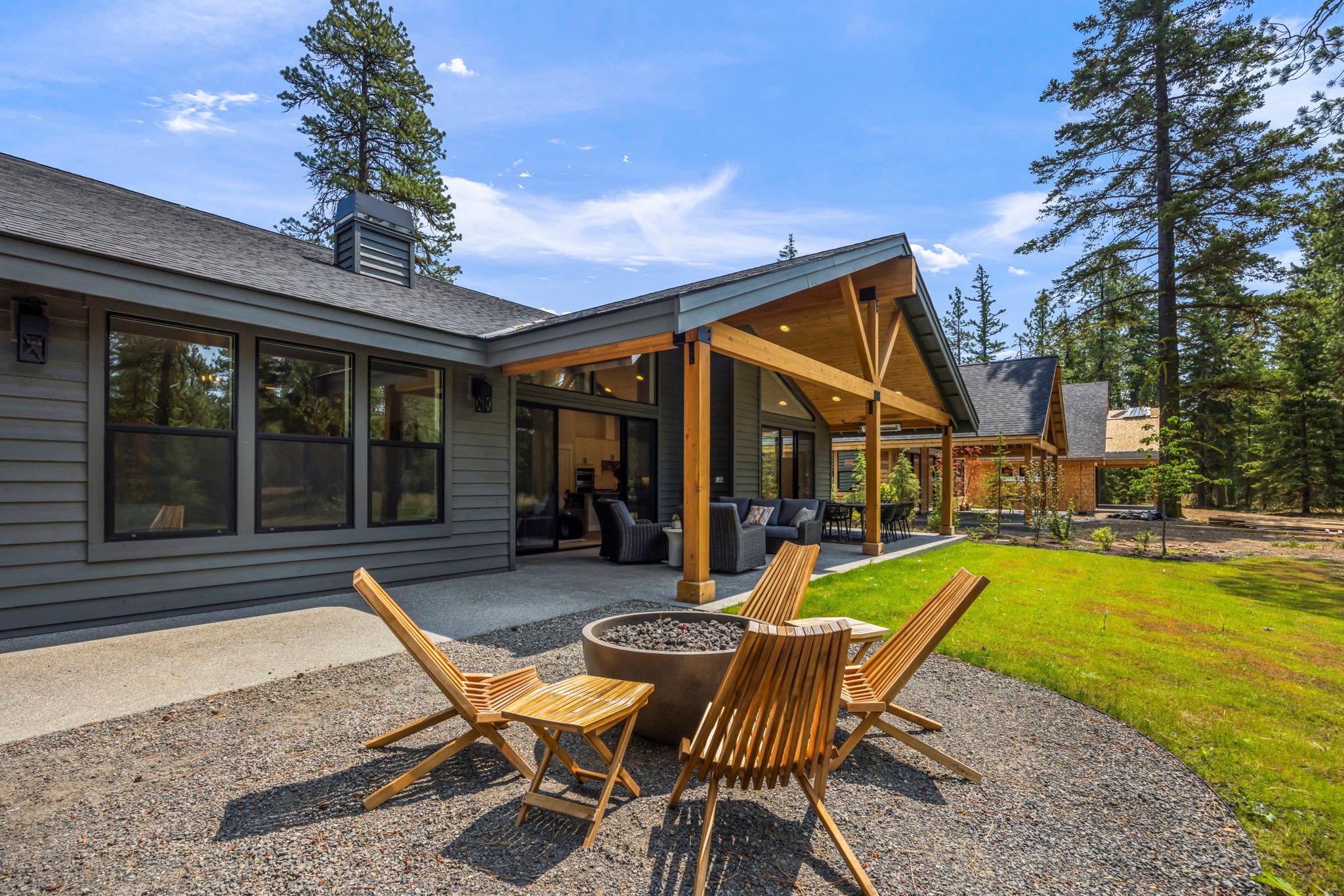 Our cozy single level Maxwelton floor plan has 2,267 sq ft that includes the Primary ensuite, 2nd bedroom w/optional study, guest bath, and additional ensuite bedroom. The open concept kitchen, dining room, & living room are vaulted, leading out to a large, covered patio with a gas firepit. This home is perfect for entertaining or just relaxing.