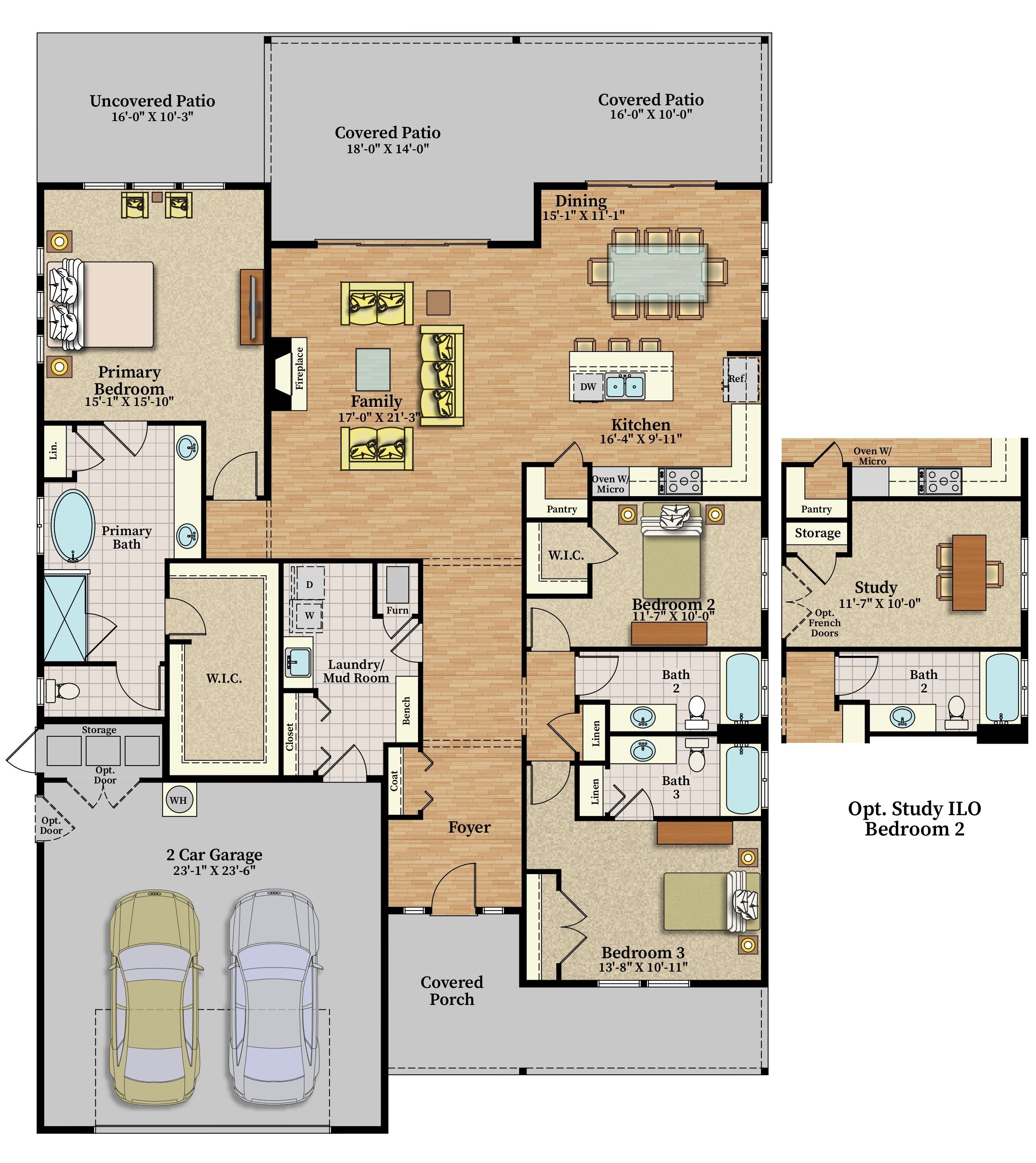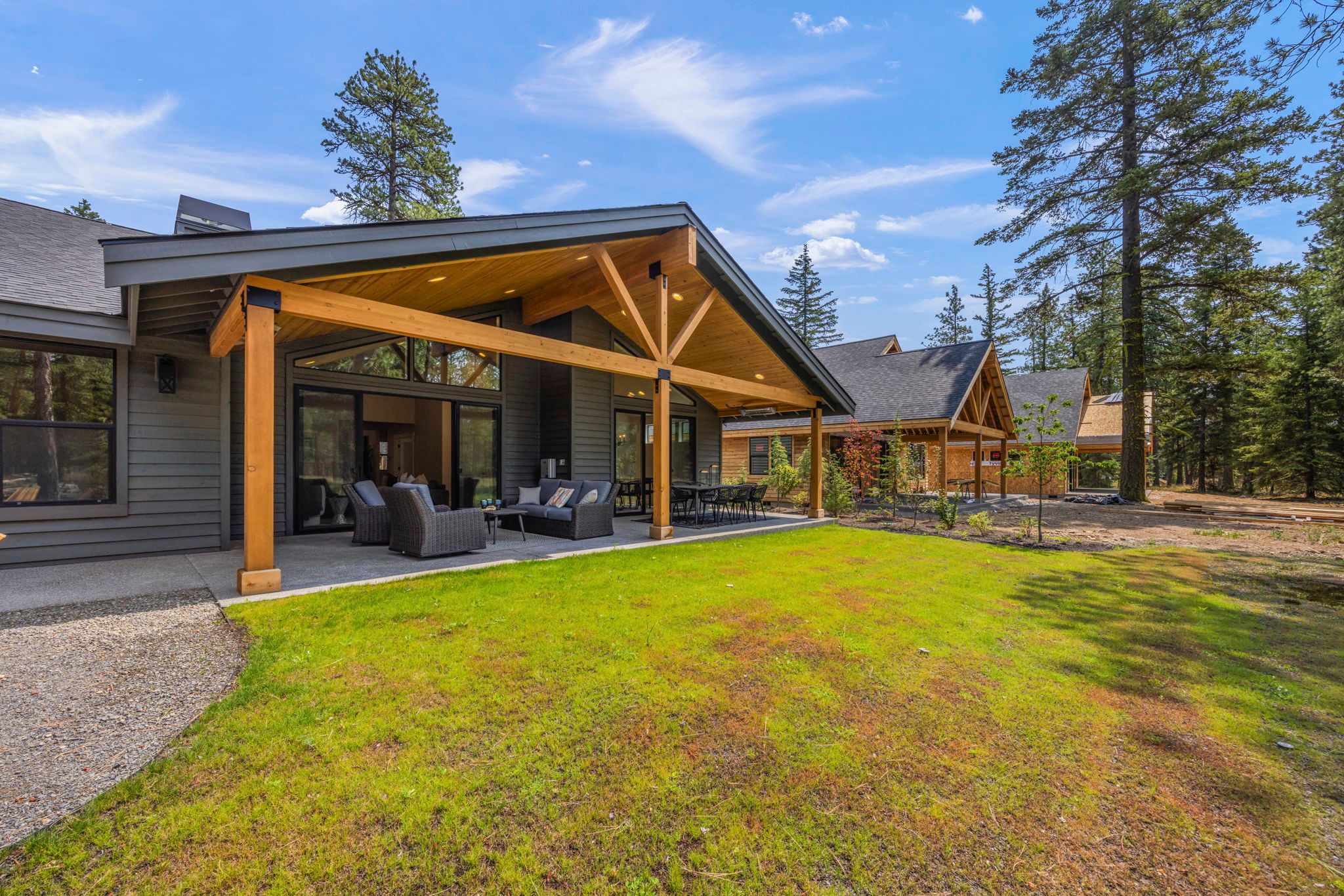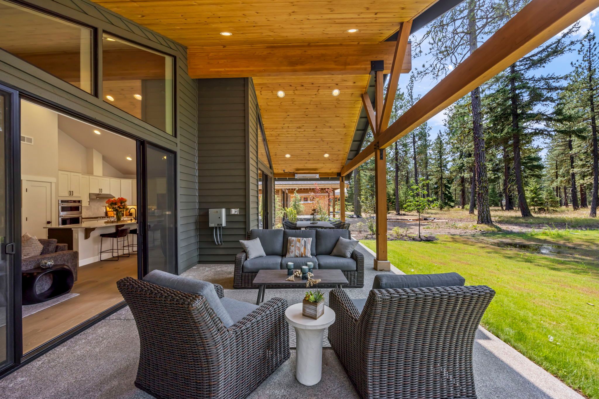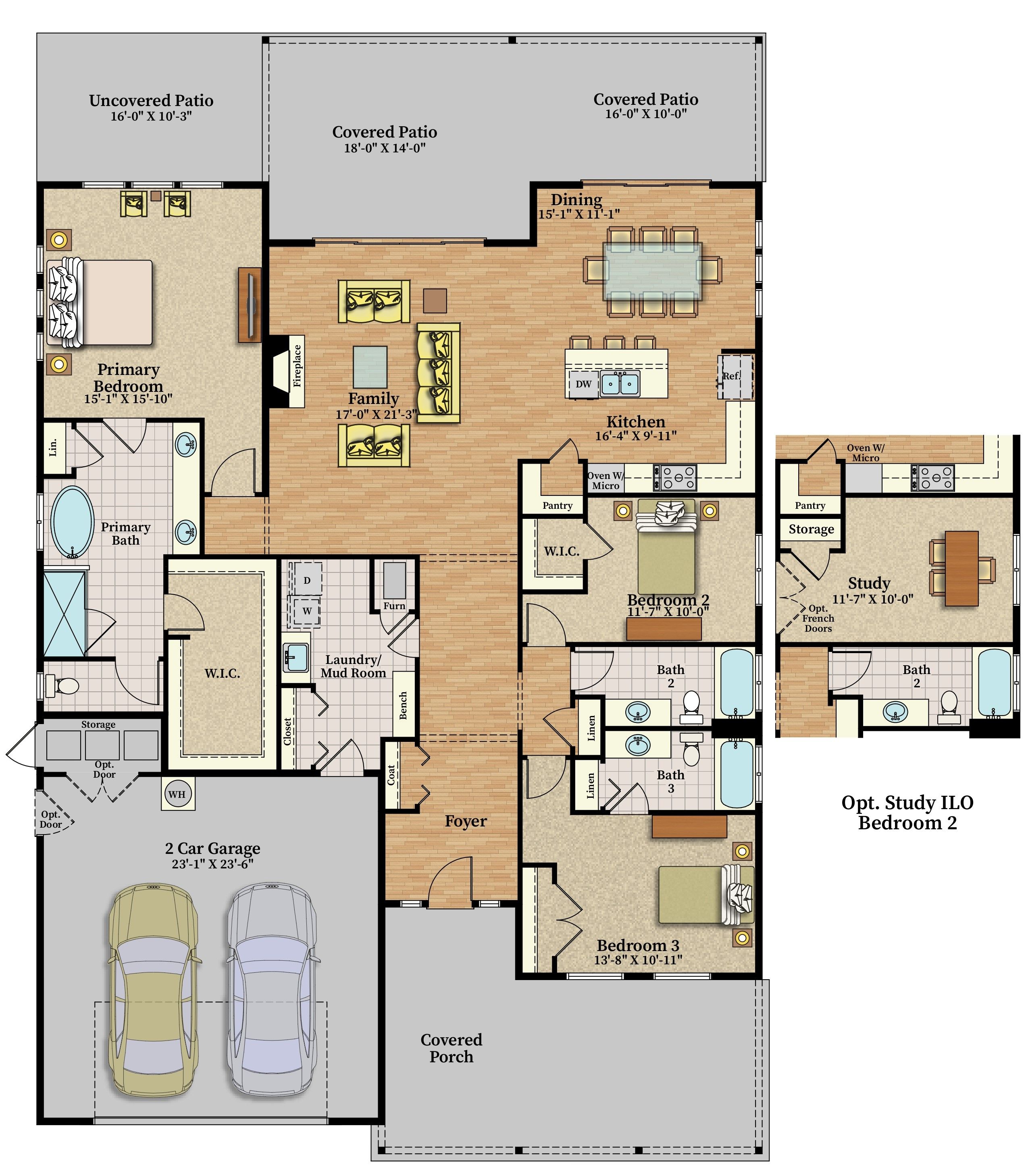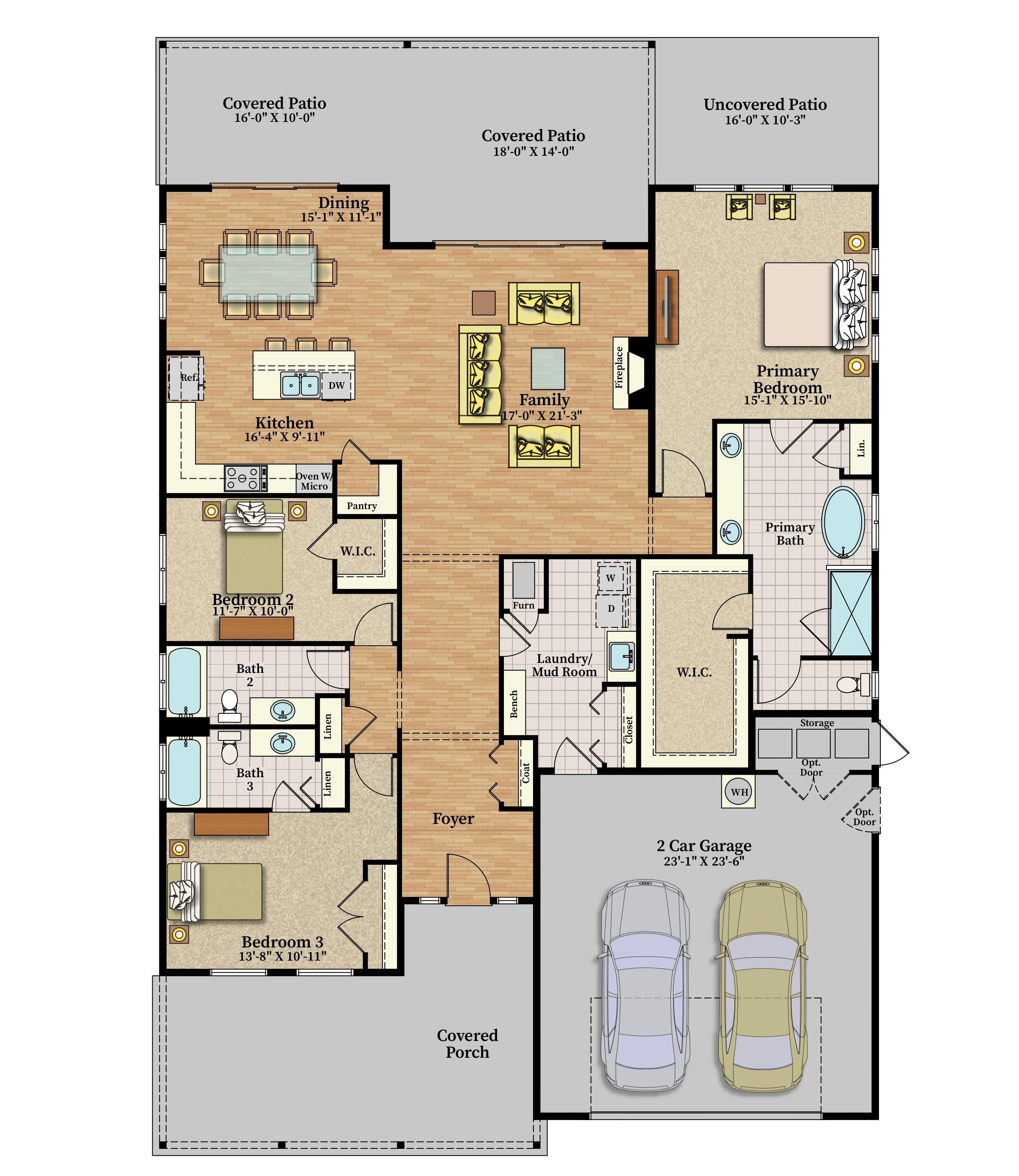 Our cozy single level Maxwelton floor plan has 2,267 sq ft that includes the Primary ensuite, 2nd bedroom w/optional study, guest bath, and additional ensuite bedroom. The open concept kitchen, dining room, & living room are vaulted, leading out to a large, covered patio with a gas firepit. This home is perfect for entertaining or just relaxing.